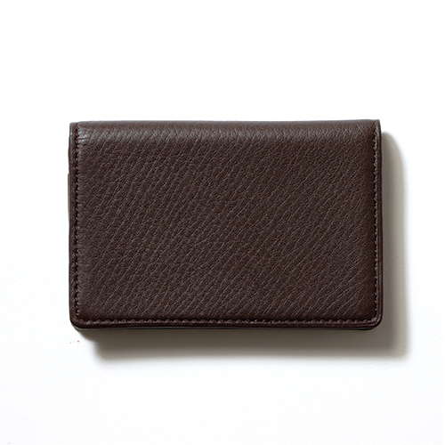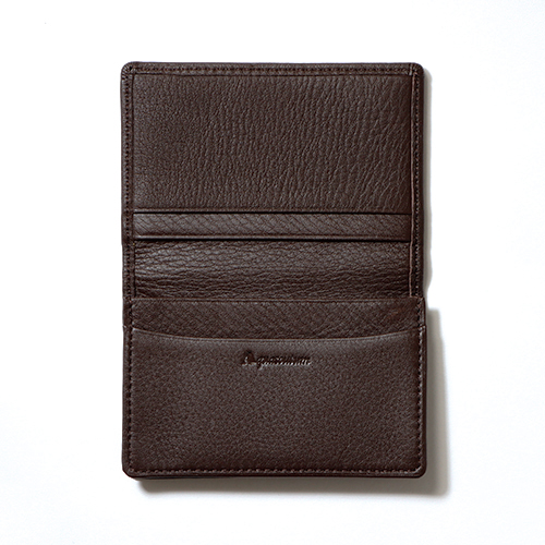 この名刺入れは通常の折り込むマチとは違い、マチを別に作ってから仕立てる「通しマチ」という製法を採用しています。