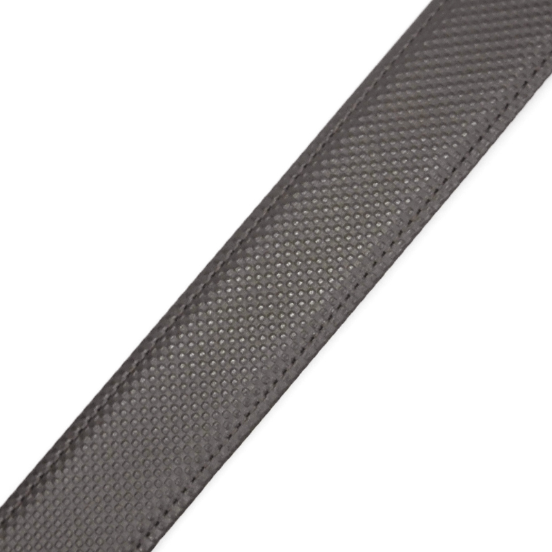 傷がつきにくい型押しレザーを使用し、サイズのアジャストがしやすい穴無しバックルを採用しています。