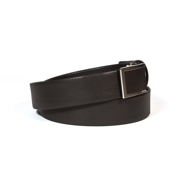 芯材を革で包み込んで仕立てる「無双仕立て」の穴無しスライドバックルベルトです。