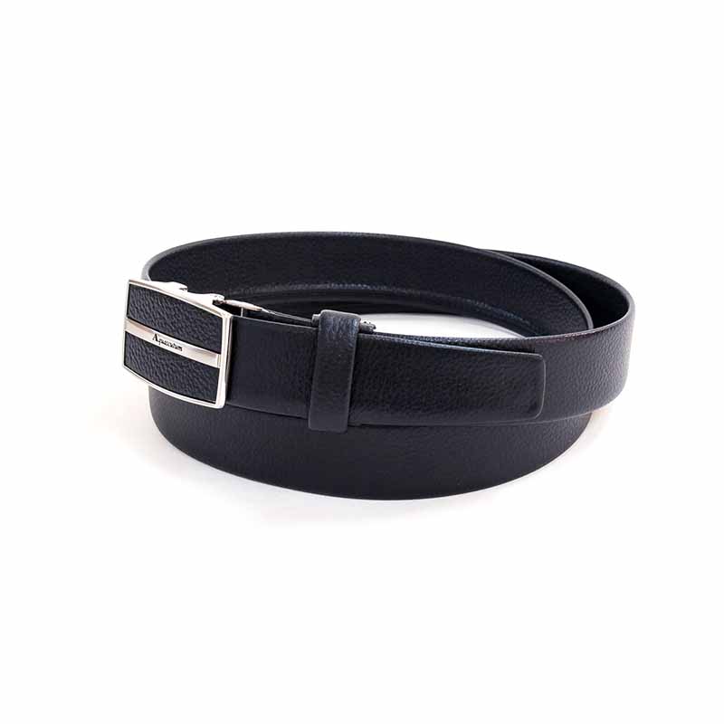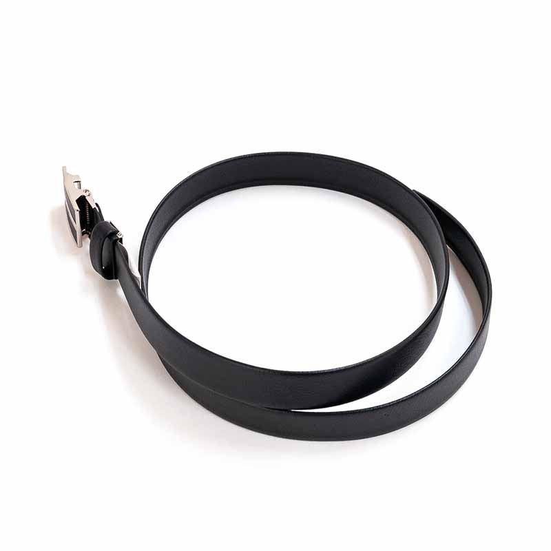 芯材を革で包み込んで仕立てられた無双仕上げの穴無しスライドバックルベルトです。