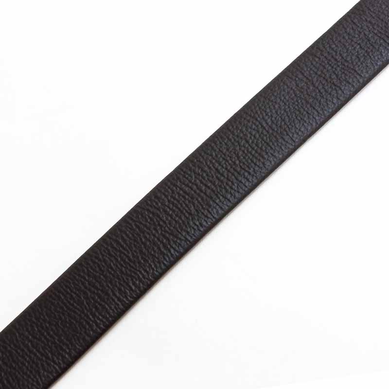 芯材を革で包み込んで仕立てられた無双仕上げの穴無しスライドバックルベルトです。