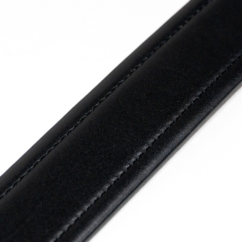 肌さわりの良い艶感のあるスムースのレザーを使用しており、帯のステッチを通常よりも内側に引いているので、ややカジュアルな印象になります。