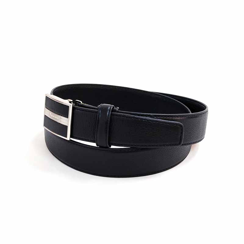 Aquascutumのロゴをセンターに配置したスクエアのバックルに、手触りの良いシボレザーを使用して日本の職人が仕立てたベルトです。
