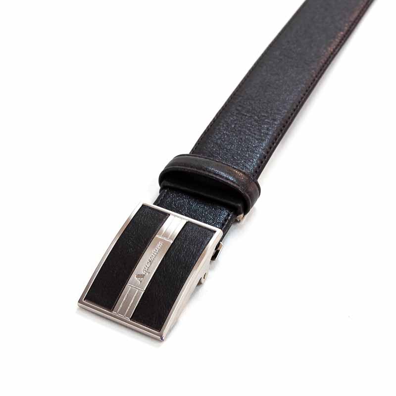 Aquascutumのロゴをセンターに配置したスクエアのバックルに、手触りの良いシボレザーを使用して日本の職人が仕立てたベルトです。