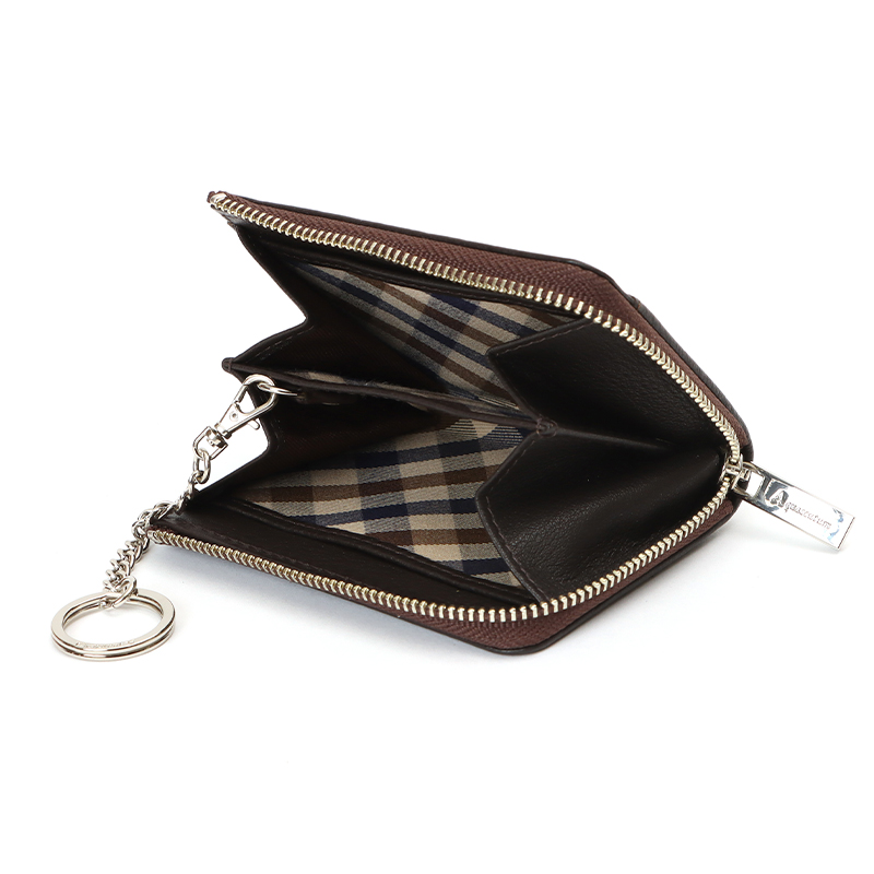 小銭室には両サイドにポケット、仕切り部分には取り合外し可能なキーチェーンも付属しています。