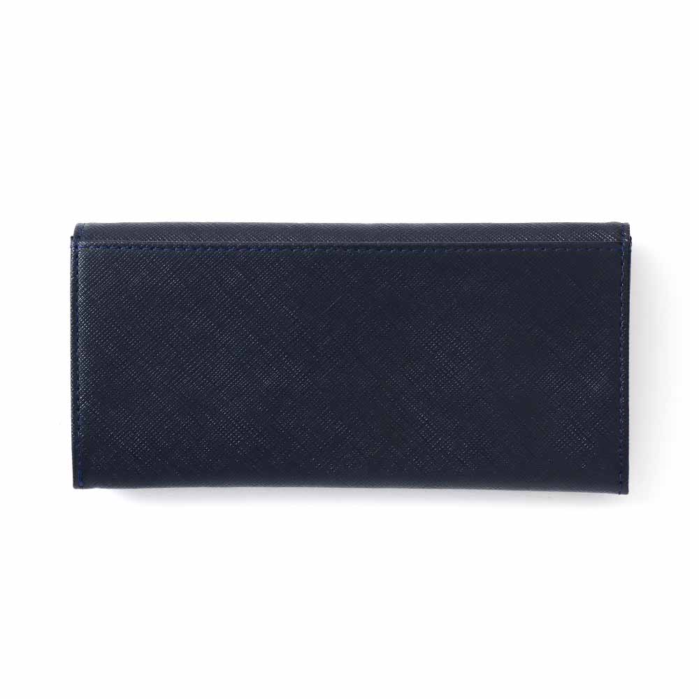 カード段をかぶせ裏に縦に収納することによって横幅を縮めることができ、コンパクトサイズな長財布に仕上がっています。