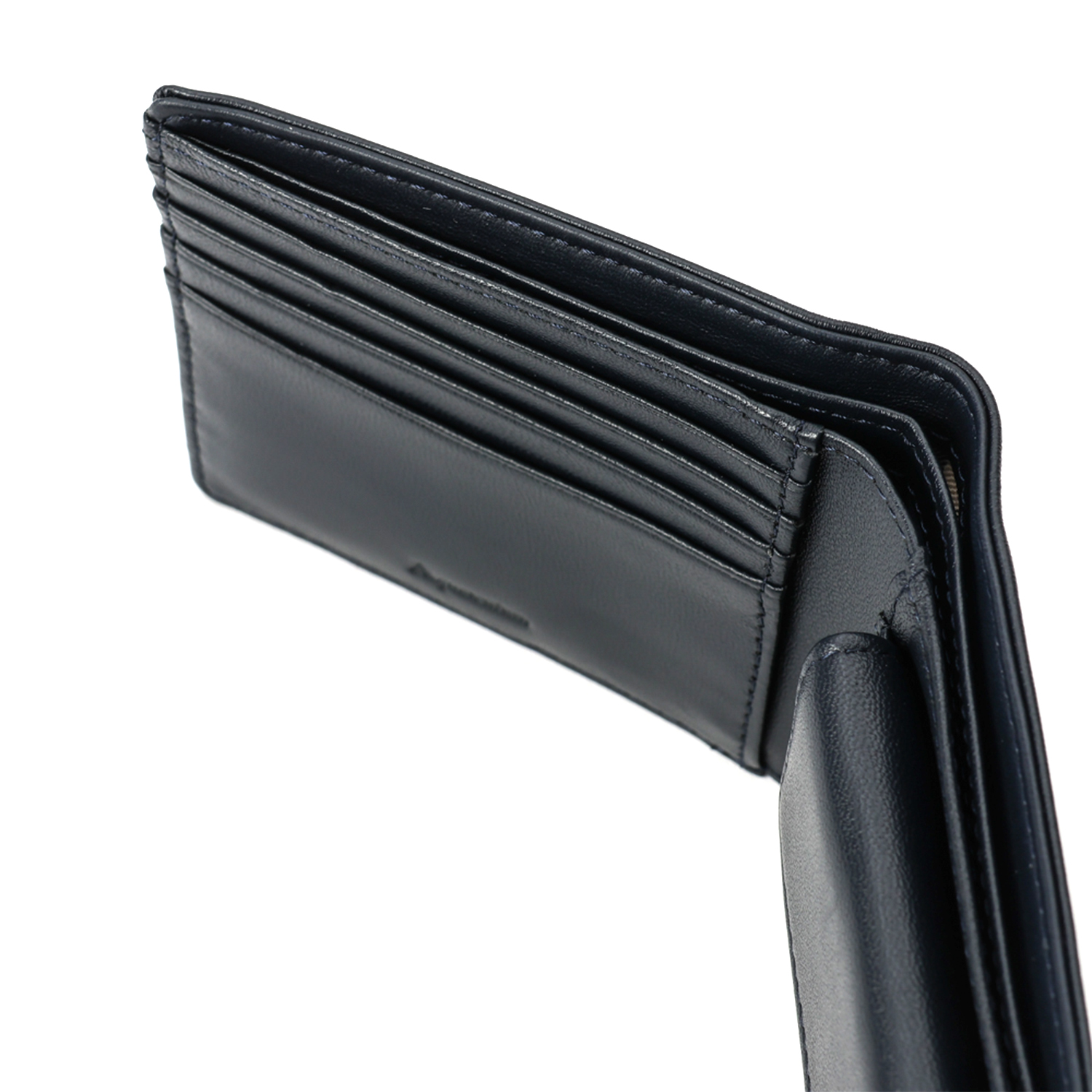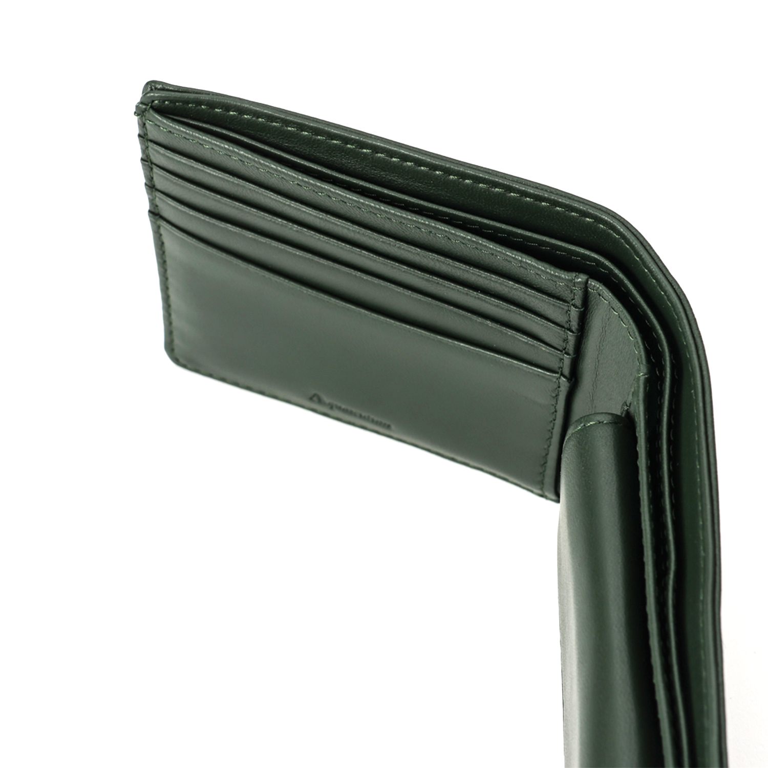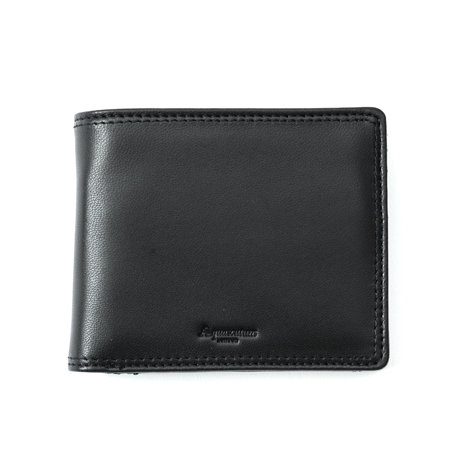 シンプルな二つ折り財布ですが、札室2室に加えて、カードが8枚収納可能で、ポケットが3箇所あるため、収納力にも優れています。