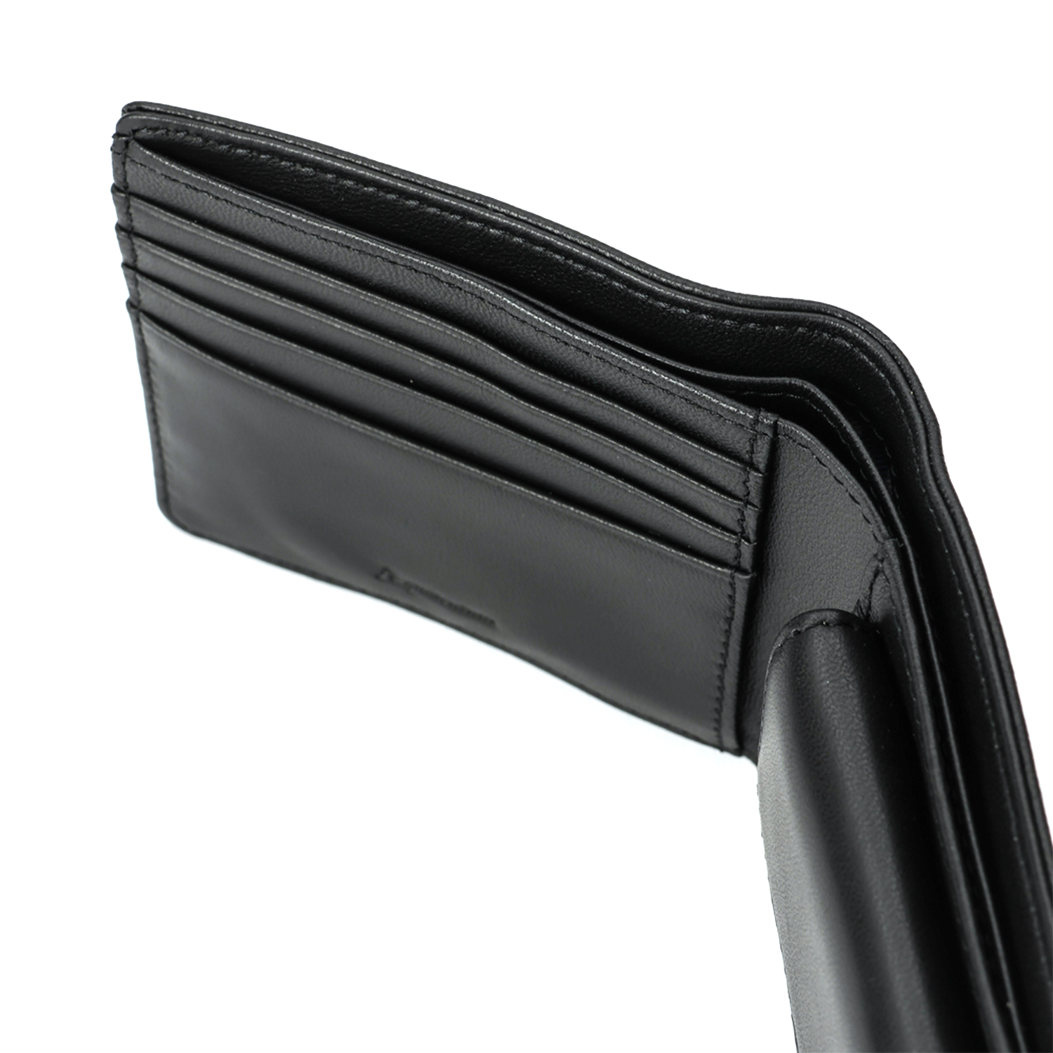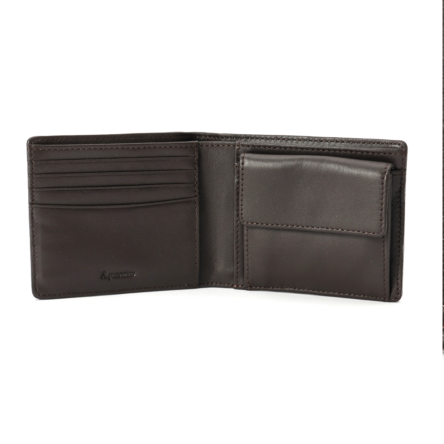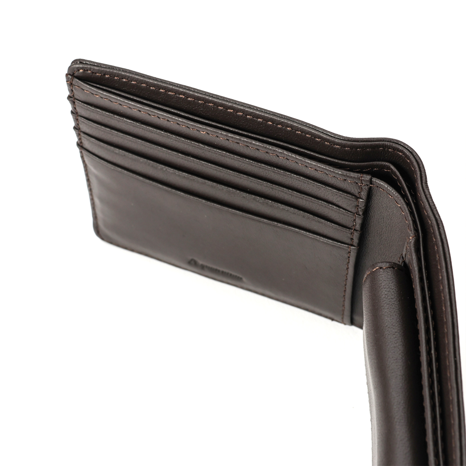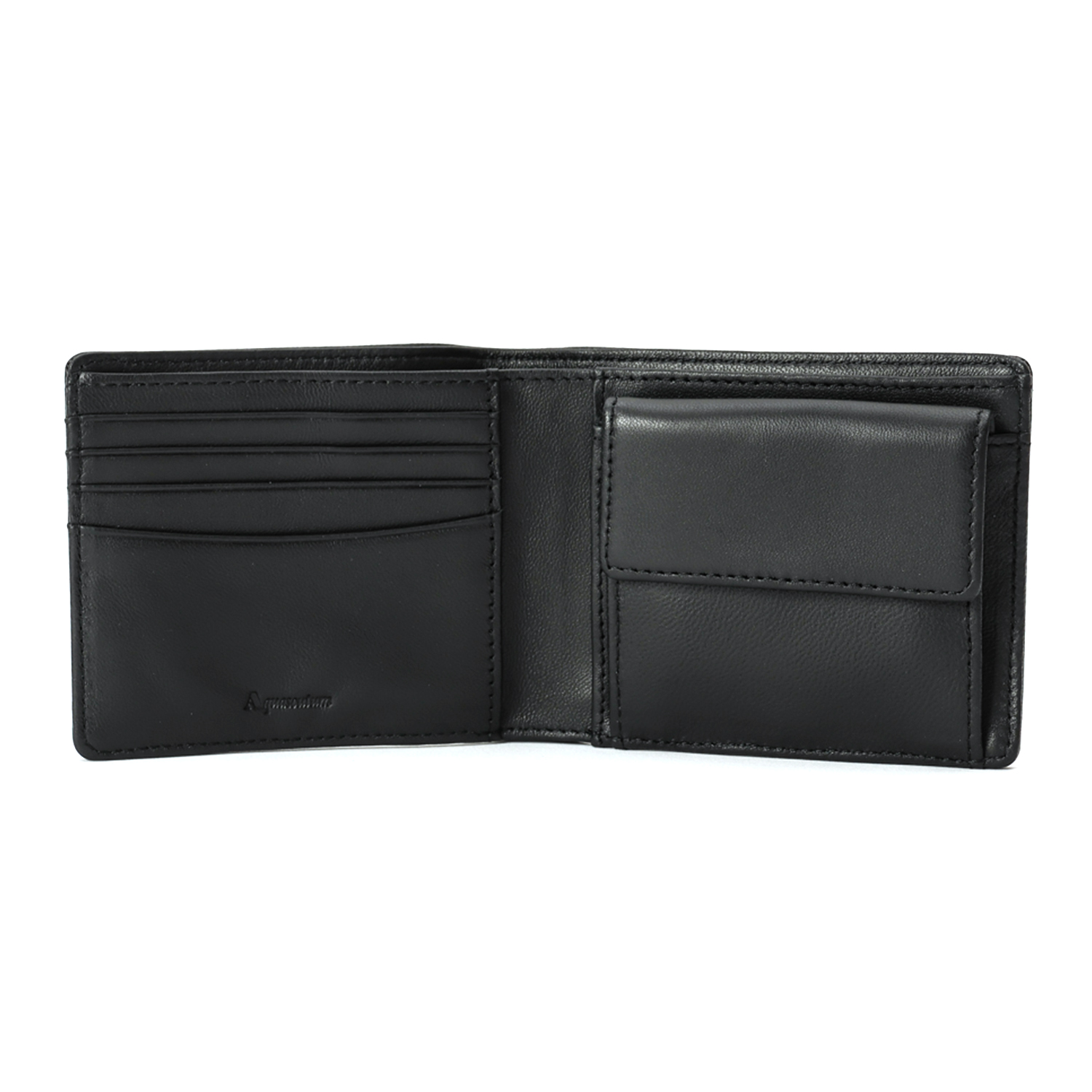 シンプルな二つ折り財布ですが、札室2室に加えて、カードが8枚収納可能で、ポケットが3箇所あるため、収納力にも優れています。