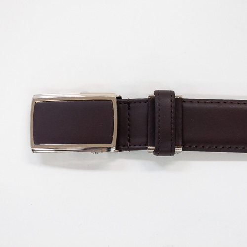 バックルの側面にあるレバーで簡単に着脱できる機能的なスライド式の穴無しベルトです。