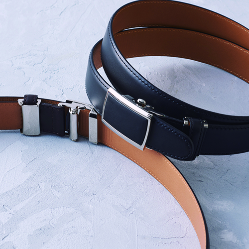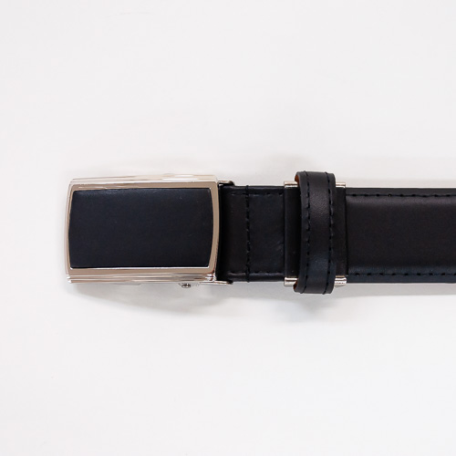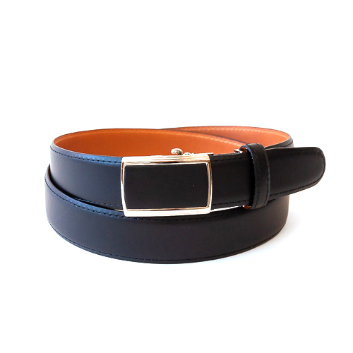 バックルの側面にあるレバーで簡単に着脱できる機能的なスライド式の穴無しベルトです。