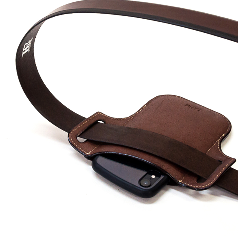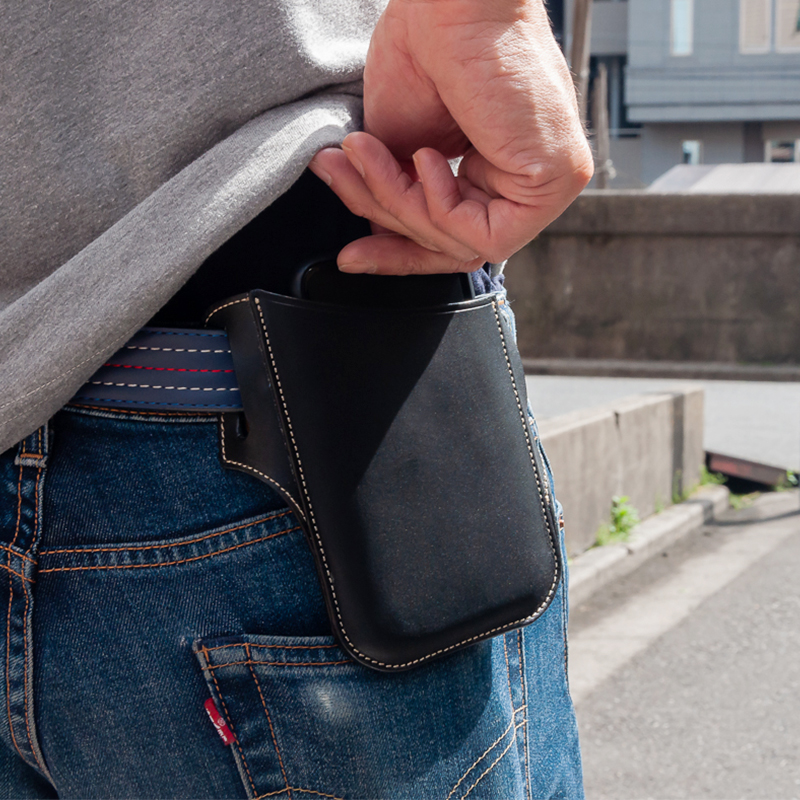 かさ張るスマートフォンをケースに入れてベルトに装着することで、いつでもハンズフリーの常態を保つことができます。散歩や旅行、キャンプなどアウトドアに活躍するアイテムです。