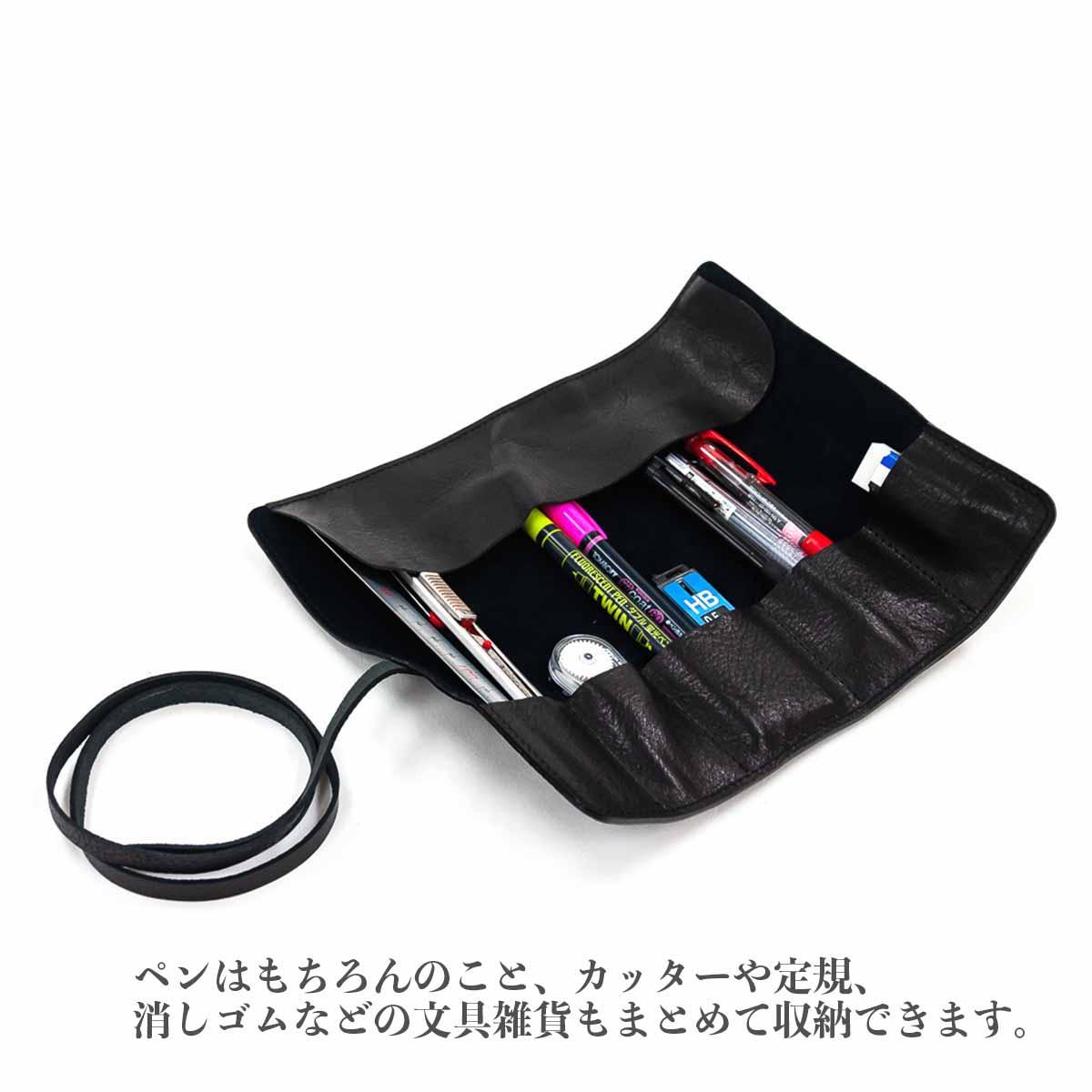 牛革を使用した贅沢なロール式ペンケースなのでモチベーションアップにもつながりますし、長くお使いいただけます。プレゼントにもおすすめです。
