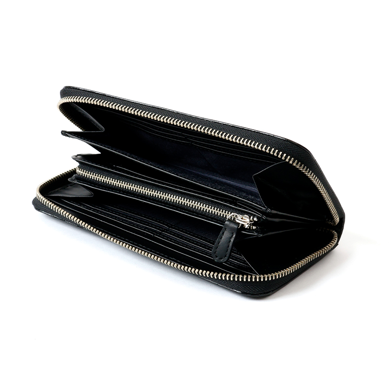 ラウンドファスナー長財布は財布の中が見やすく、取り出しやすいので男女問わず人気の形です。 カードは14枚収納可能で、その他にもポケットが4か所あります。