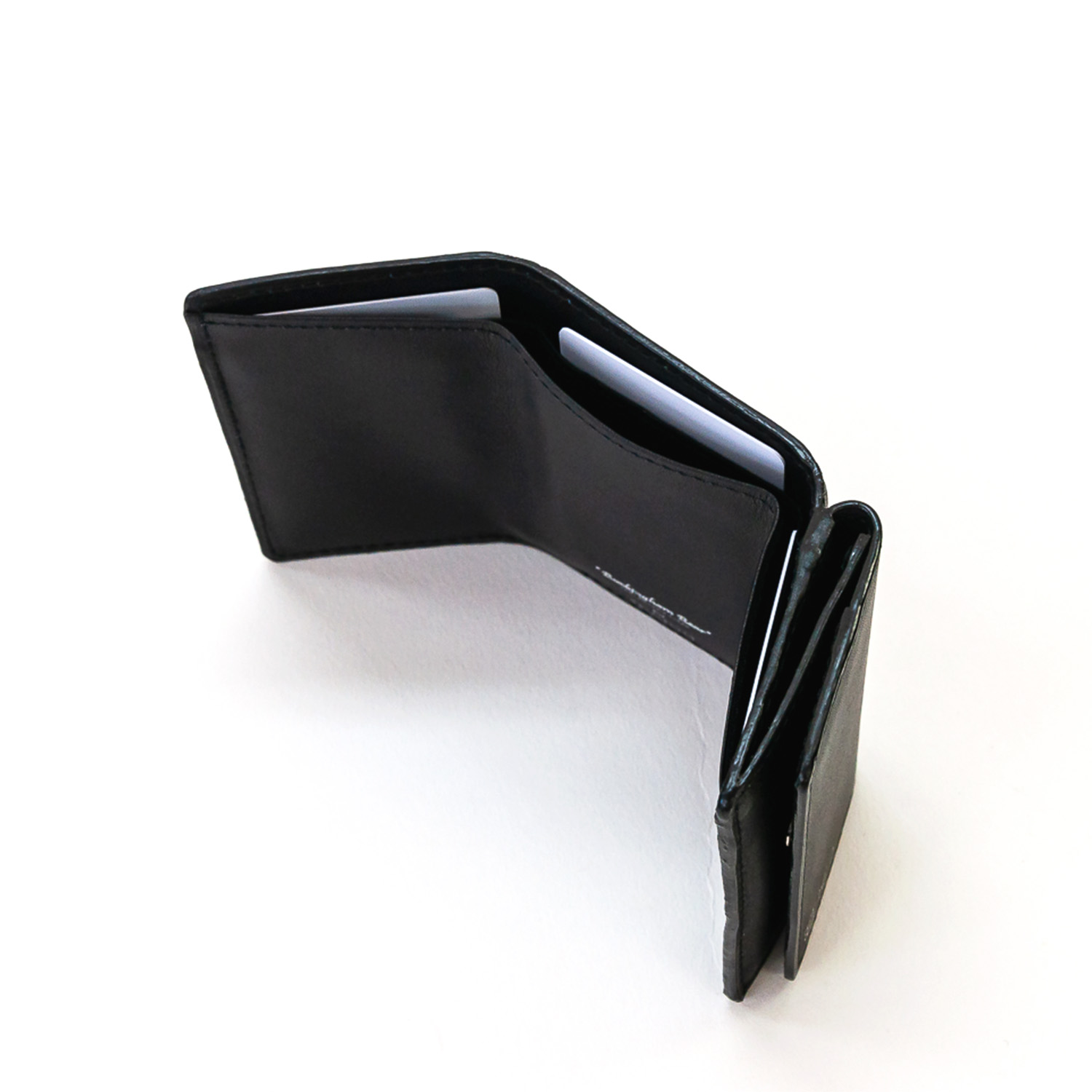 コンパクトでシンプルなデザインの三つ折りタイプのミニ財布です。お金やカードを最小限にして持ち歩きたい方におすすめのアイテムです。