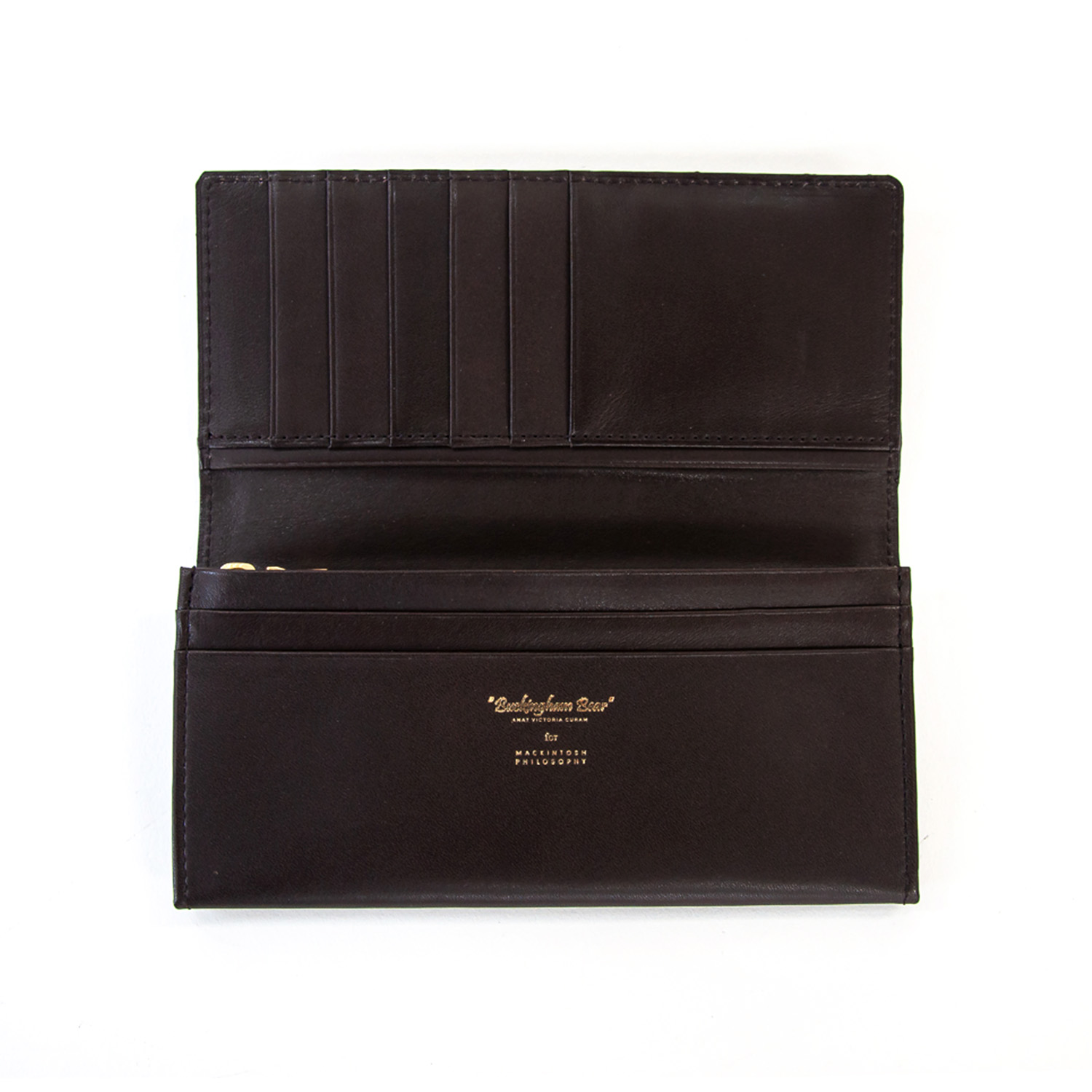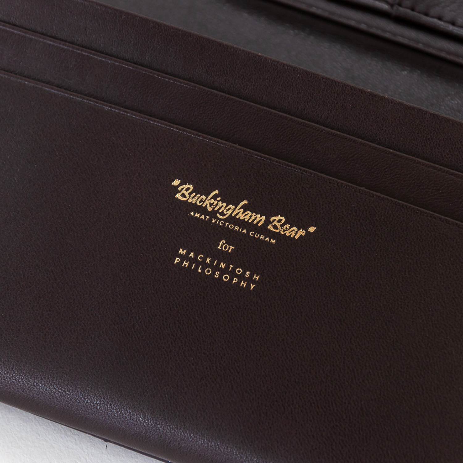 手触りのよいスムースレザーにマッキントッシュフィロソフィーブランドで人気なバッキンガムベアをワンポイントに箔押したバッキンガムベアーシリーズです。