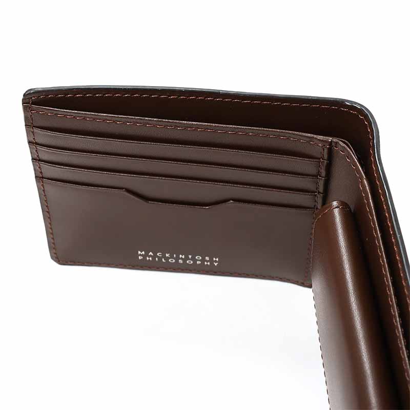 二つ折り財布はビジネスシーンでも使えるシンプルで上品なデザインで、カード室が4段とフリーポケットが3つあります。