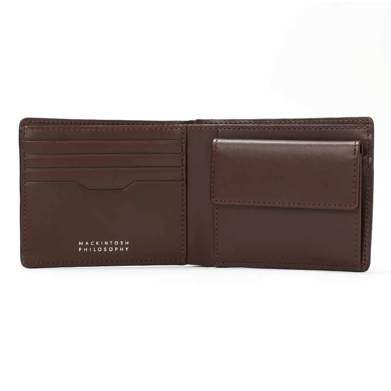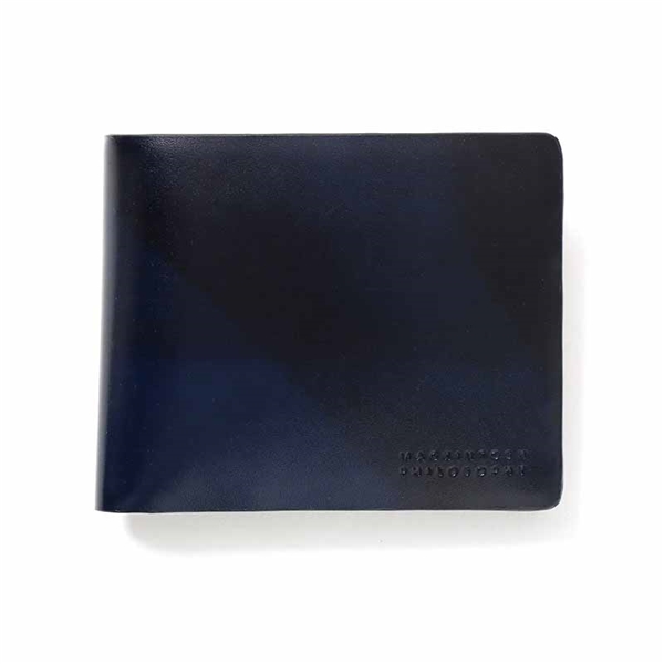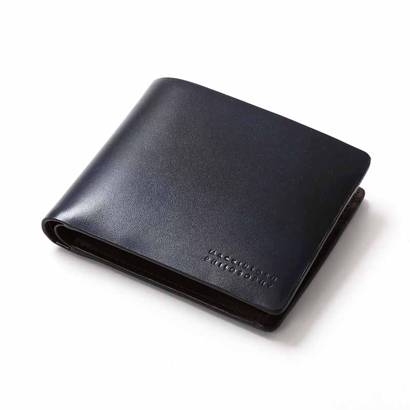二つ折り財布はビジネスシーンでも使えるシンプルで上品なデザインで、カード室が4段とフリーポケットが3つあります。