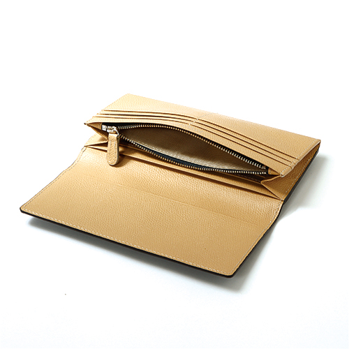 表と中のコントラストカラーを楽しめるユニセックスな革小物