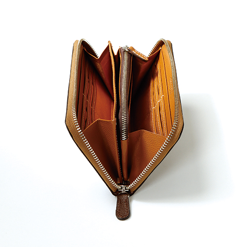 表と中のコントラストカラーを楽しめるユニセックスな革小物