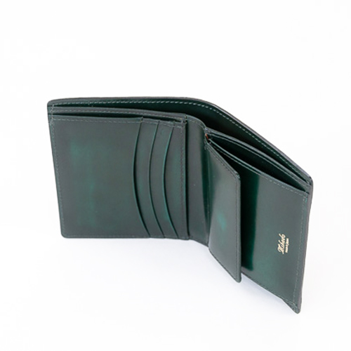 仕様は二つ折りコンパクト財布です。サイズは縦:8.5cm×横10.5cmでカード収納は必要最小限にカード段3つ、ポケット2があり、計5つあります。扱いやすいサイズ感かつ、他にはなかなかないデザインですので他の人とは違うアイテムを持ちたい方には特におすすめです。