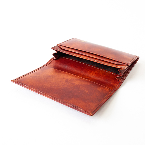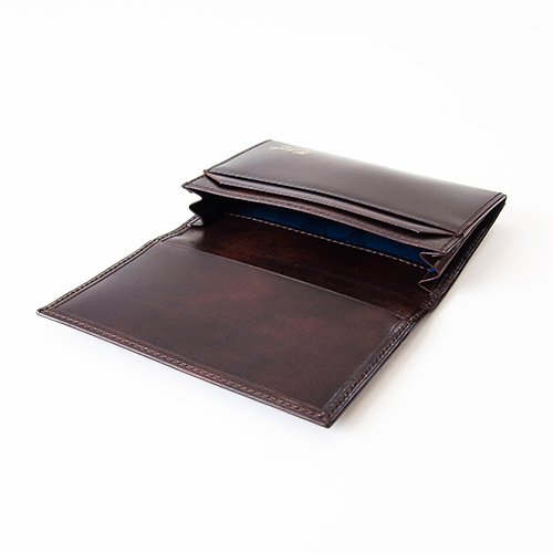 素材の良さを活かすためカード段などを増やさずシンプルに仕立てた名刺入れです。アンティークな風合いは、ビジネスシーンにおいて上品でインテリジェンスな印象を与えます。
