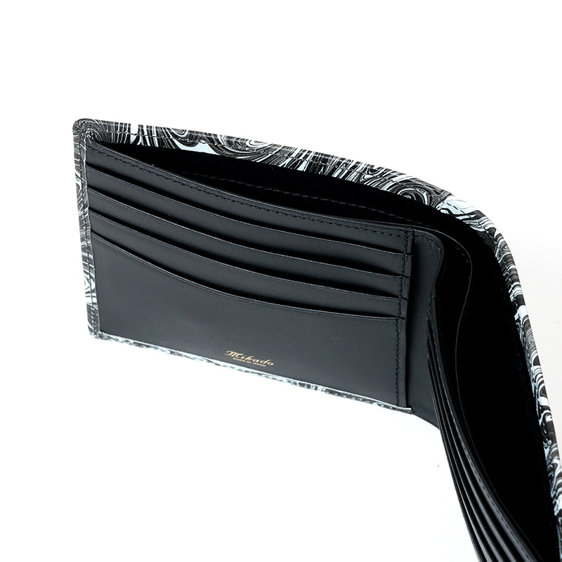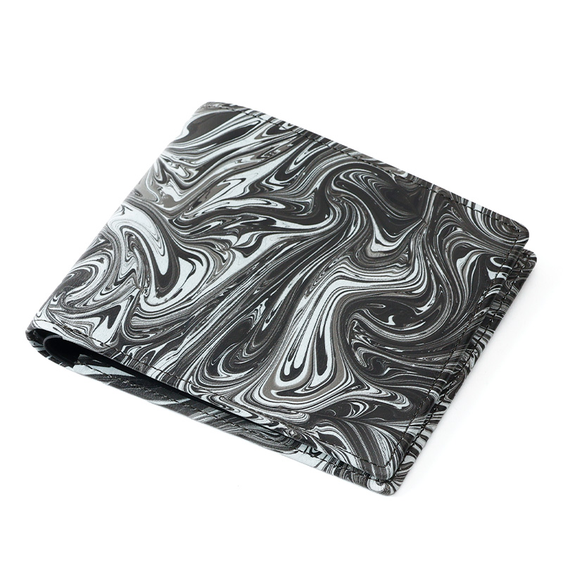 千年以上もの歴史を持つ伝統的な紙染め「墨流し」の技法を用いてレザーを染色しています。