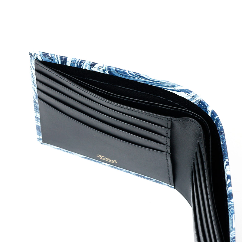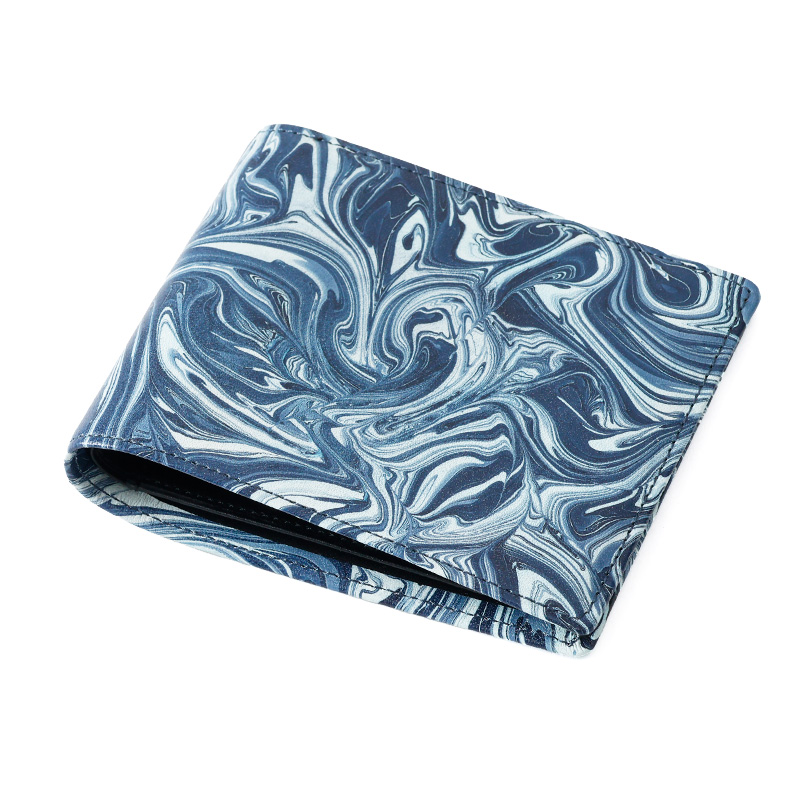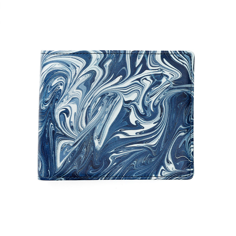 千年以上もの歴史を持つ伝統的な紙染め「墨流し」の技法を用いてレザーを染色しています。