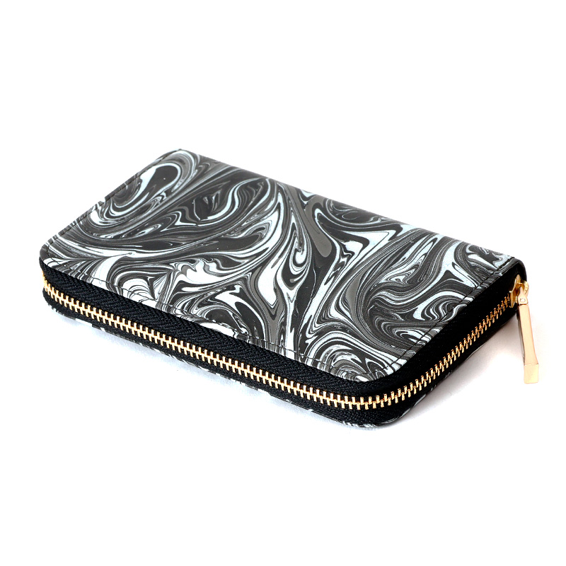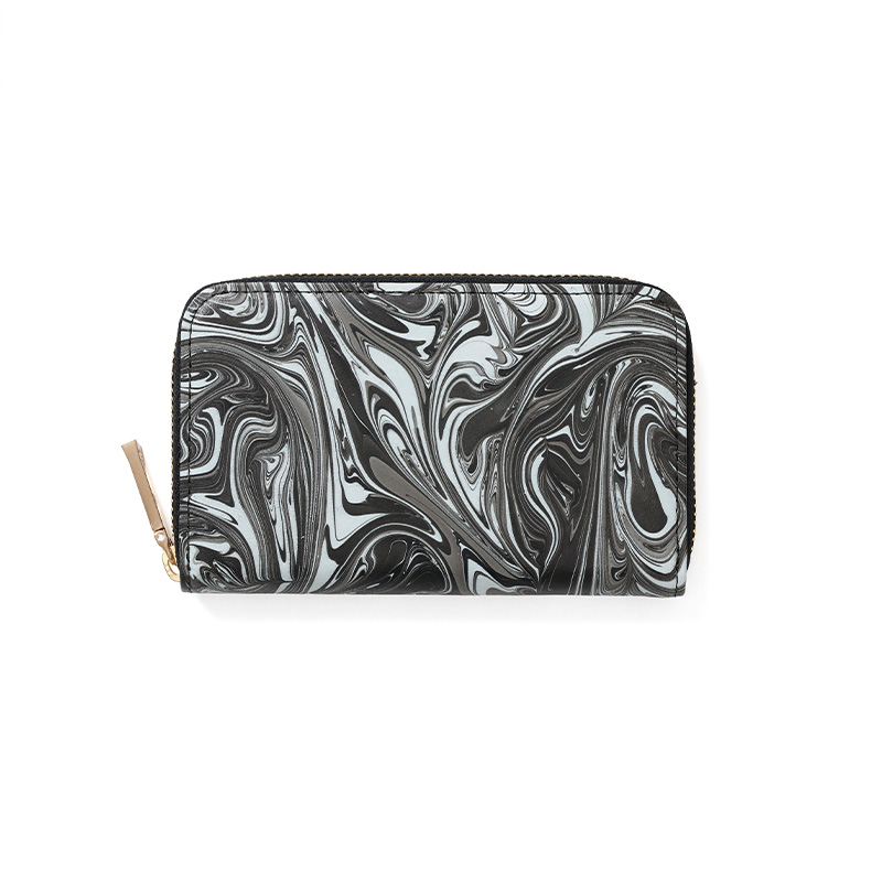 千年以上もの歴史を持つ伝統的な紙染め「墨流し」の技法を用いてレザーを染色しています。