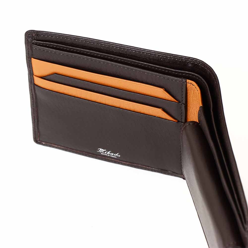 内装のカラーを一部変更することで、コントラストを強調したデザイン性を持たせており、カード収納は通常のカード室4つの他に札室の仕切りに更にカード室を4つ設けることで合計8室あり、ポケットも3室あるので収納抜群な二つ折り財布となっております。