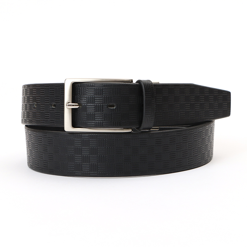 日本の伝統的な四崩し文様をエンボス加工した一枚革ベルト