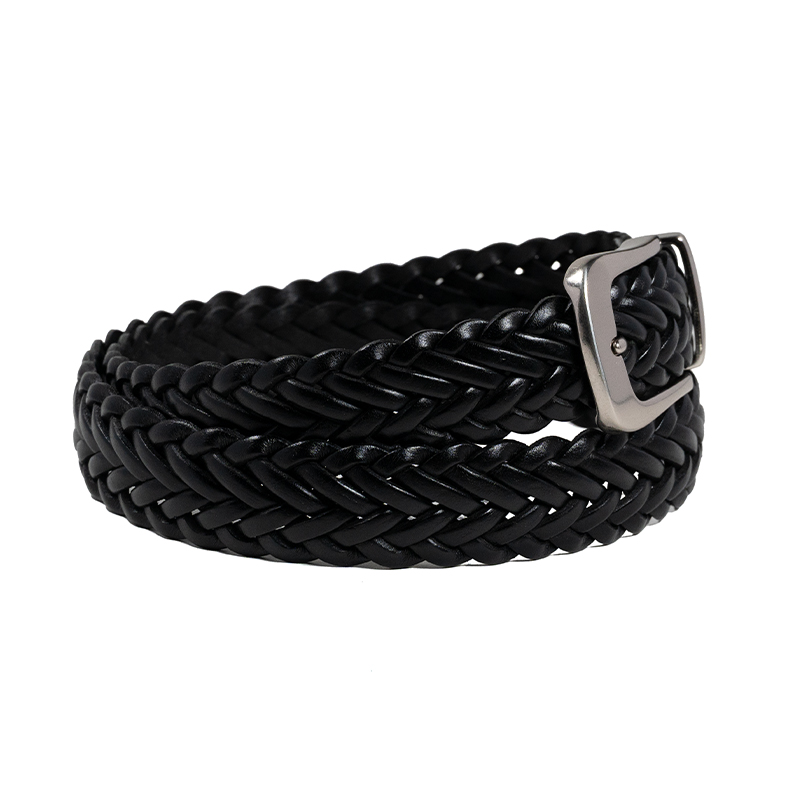 もっちりとした上質な革の質感と光沢、編み込みならではのしなやかさで腰回りに心地よくフィットします。