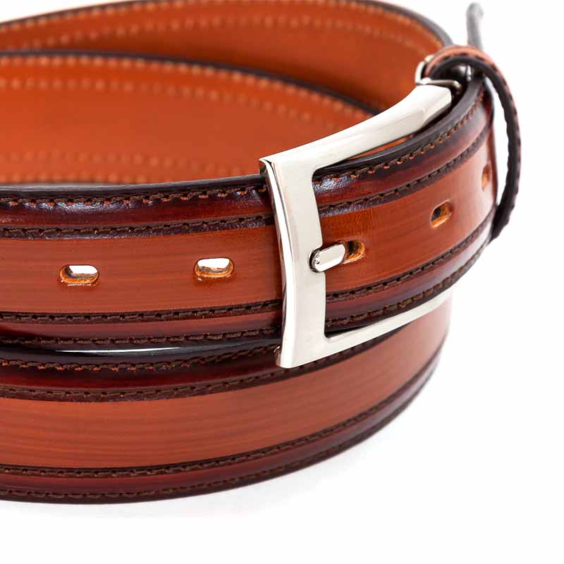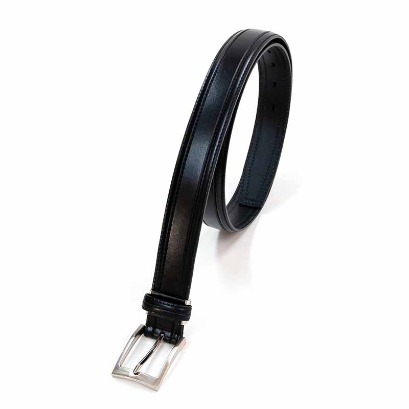 アンティーク加工を施した帯に、2本のラインを溝切加工されたデザインが魅力のカジュアルベルトです。アンティーク加工された茶系の靴との相性も抜群で、ジャケットスタイルも含めた幅広いカジュアルスタイルにおすすめのベルトです。