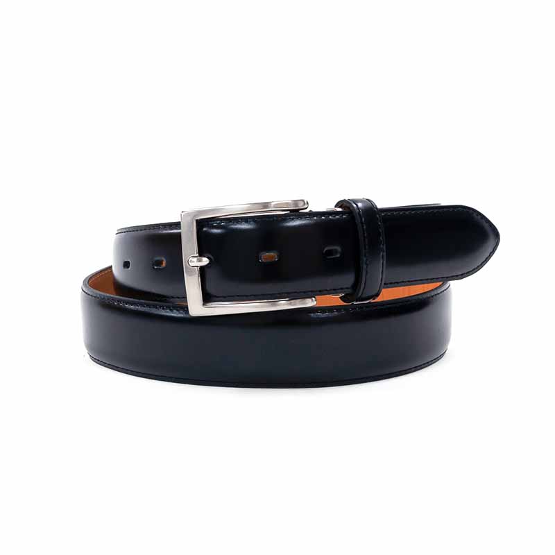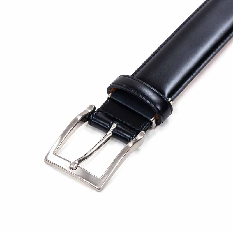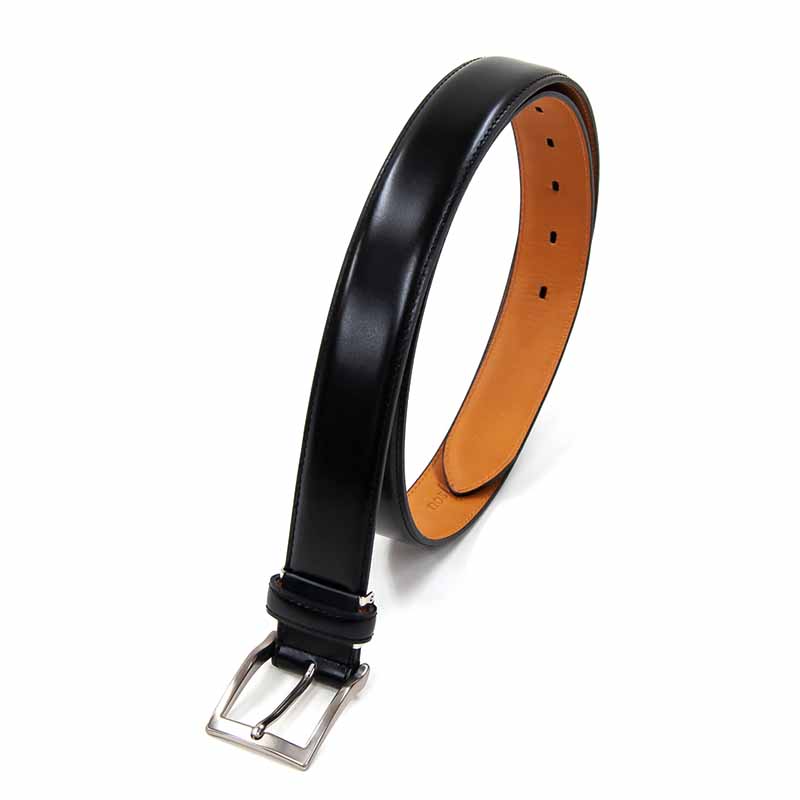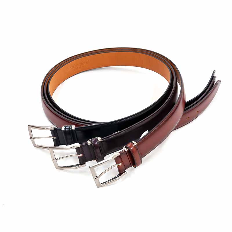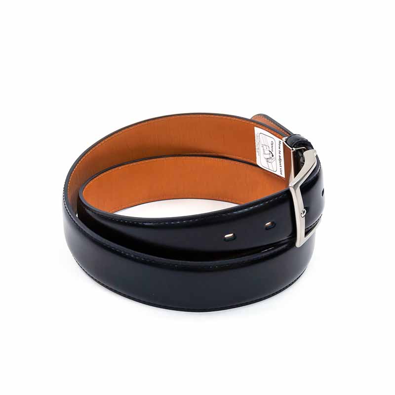 透明感のあるガラス仕上げの革にアンティーク加工を加えたビジネスベルト