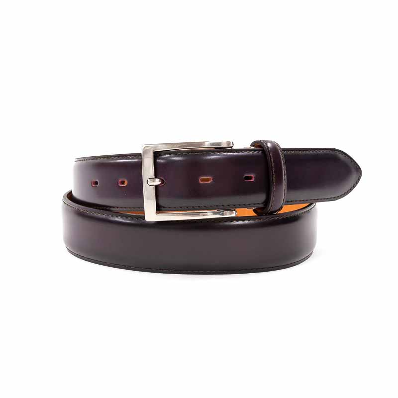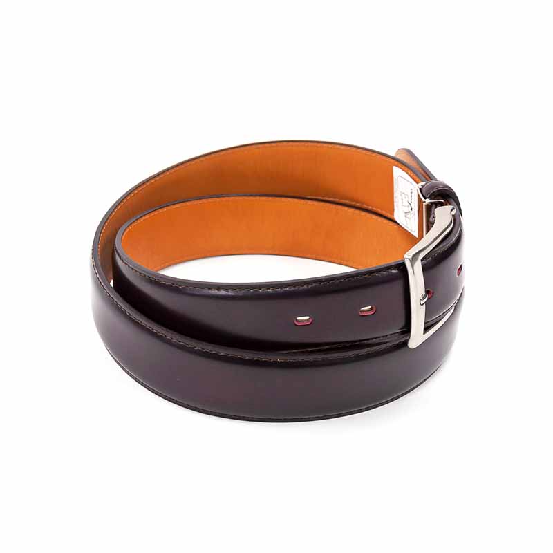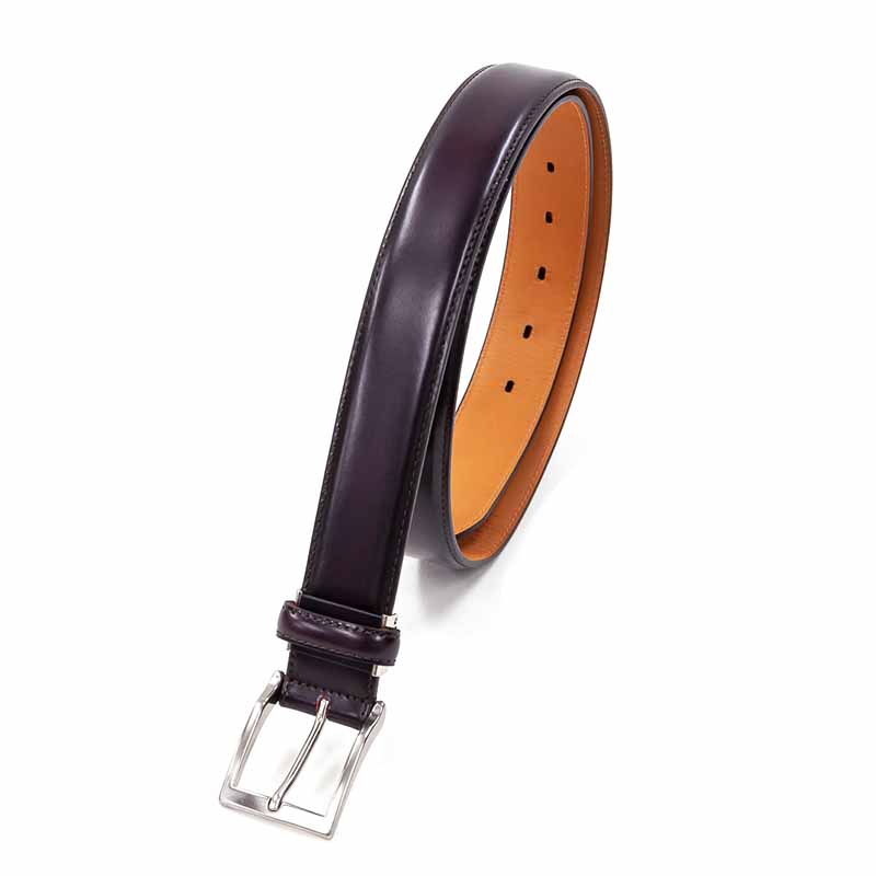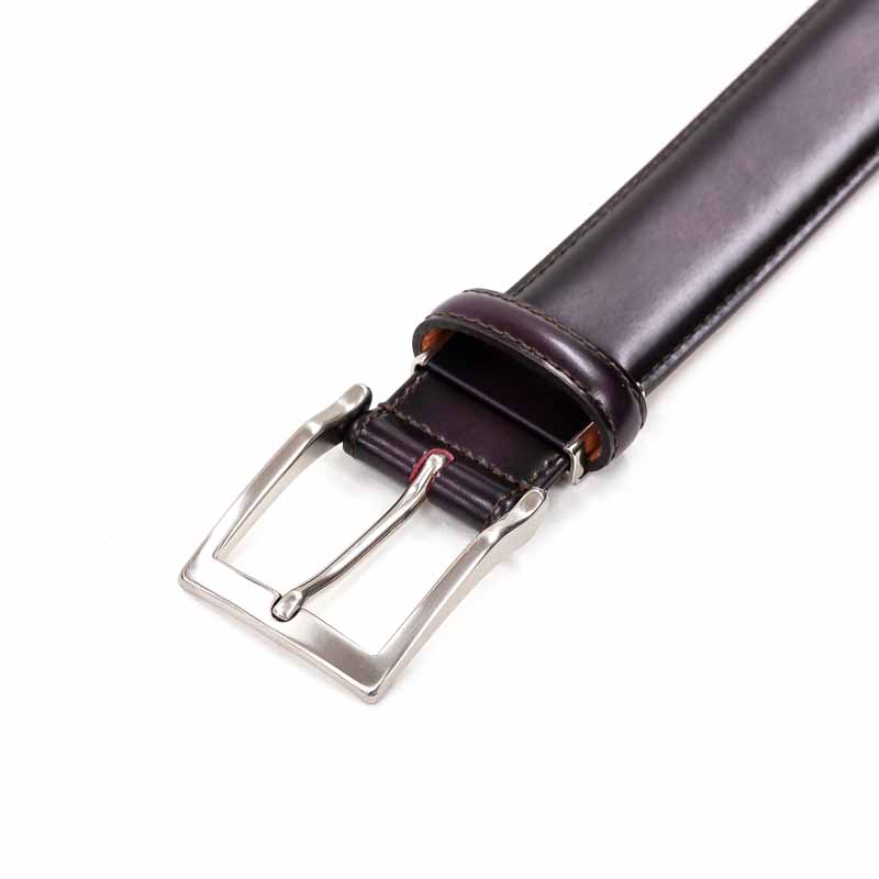 透明感のあるガラス仕上げの革にアンティーク加工を加えたビジネスベルト