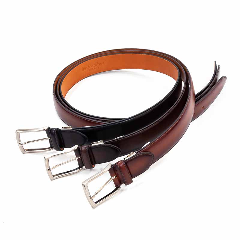 アンティーク加工を施したベルトにハケで模様を付けて仕上げた、独特な深みのあるアンティーク感のあるビジネスベルトです。