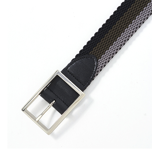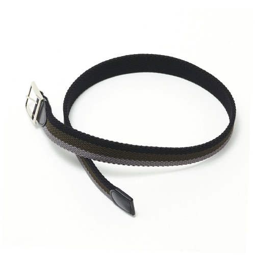 イタリア製の3色使いのゴムメッシュ帯を使用し、リバーシブルにも使える仕様にしたカジュアルベルトです。幅広いコーディネートを可能にするおすすめのアイテムです。