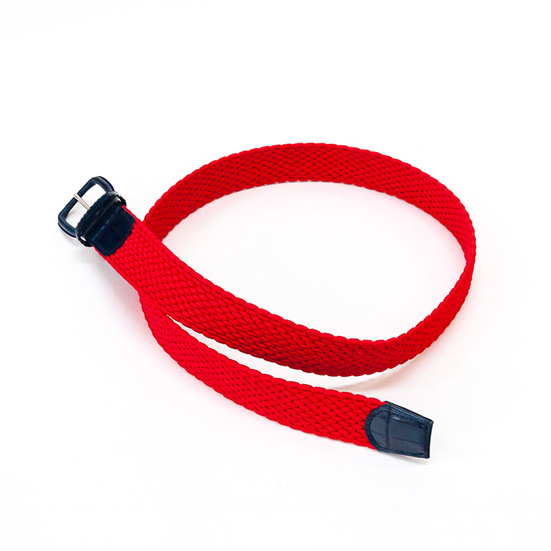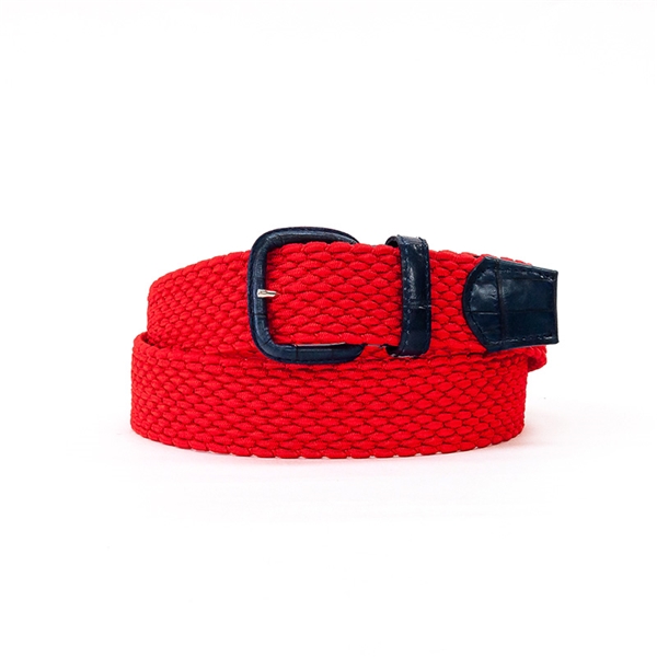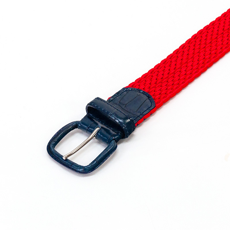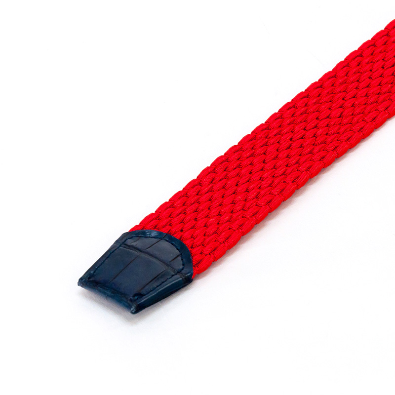 クロコダイル型押しレザーでくるんだバックルのゴムメッシュベルト