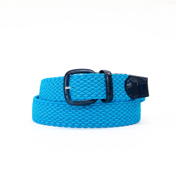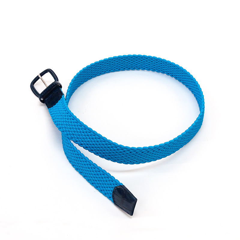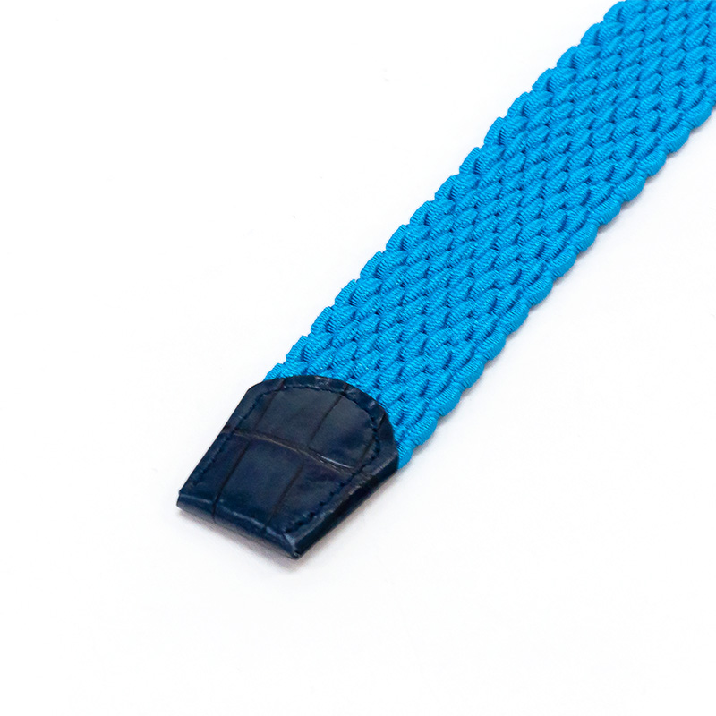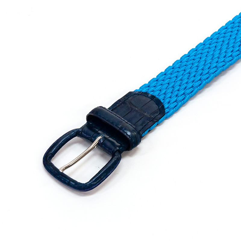 クロコダイル型押しレザーでくるんだバックルのゴムメッシュベルト