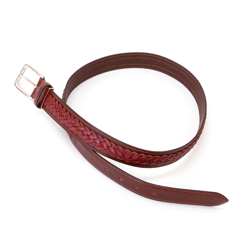 レザーメッシュをベルト帯にのせ、ステッチ掛けしたカジュアルベルトです。ジーンズやチノパンなどとのコーディネートがおすすめです。