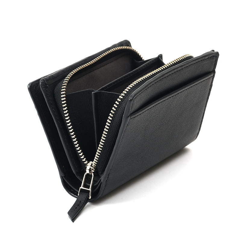 小銭入れ部分はラウンドファスナーになっているので小銭が取り出しやすい設計です。 小さいバックを持ち歩く人にはおすすめです。