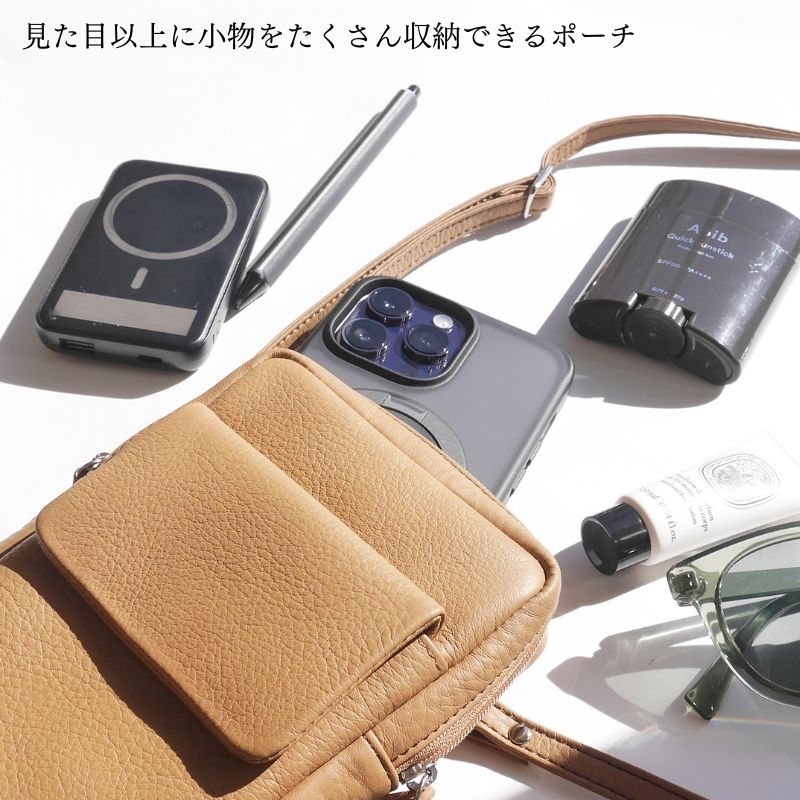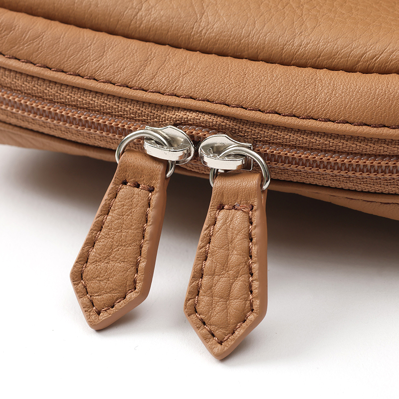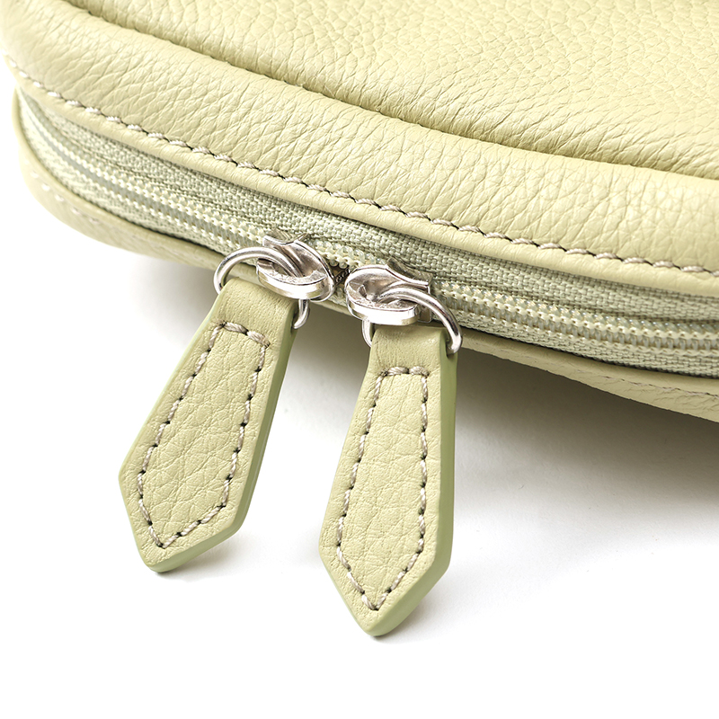 自然なシボ感のあるソフトシュリンクの牛革を使用しています。国内のタンナーで仕上げており、傷がつきにくく丈夫な革なので長くご使用いただけます。