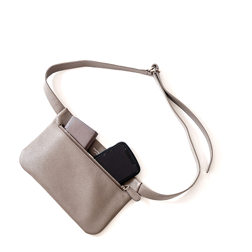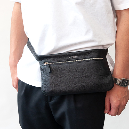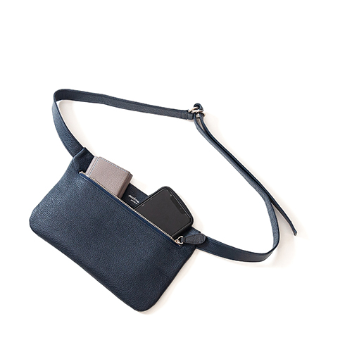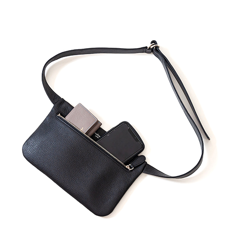 お財布とスマートフォンが入るサイズ感で作られたミニマムなウエストバッグです。このミニマムなデザインも飽きのこないシンプルさで街中や旅先の風景に溶け込むようなスタイリッシュさを演出してくれます。