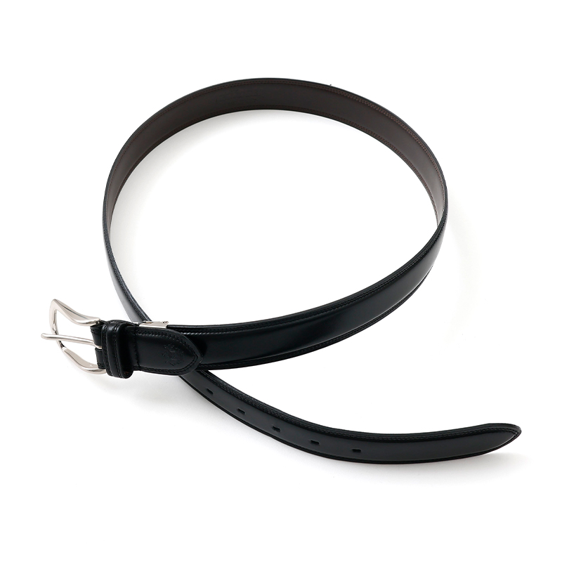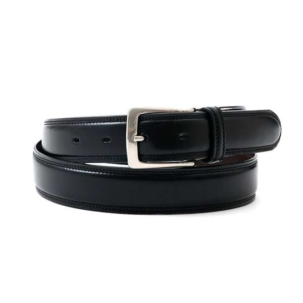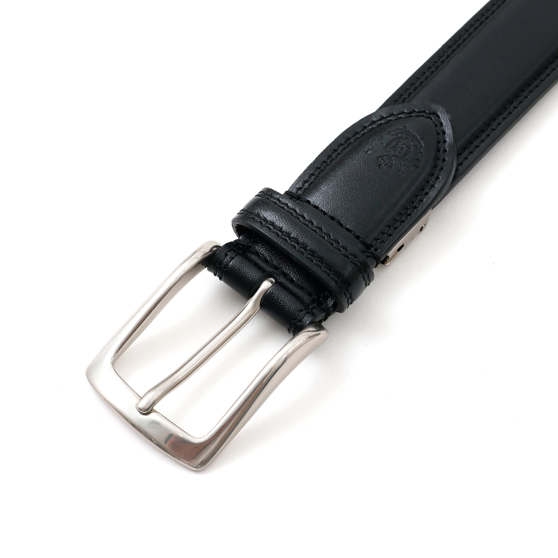 スタンダードなデザインで、スムースレザーを使用したピンタイプのビジネスベルトです。