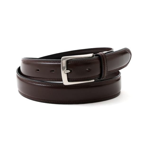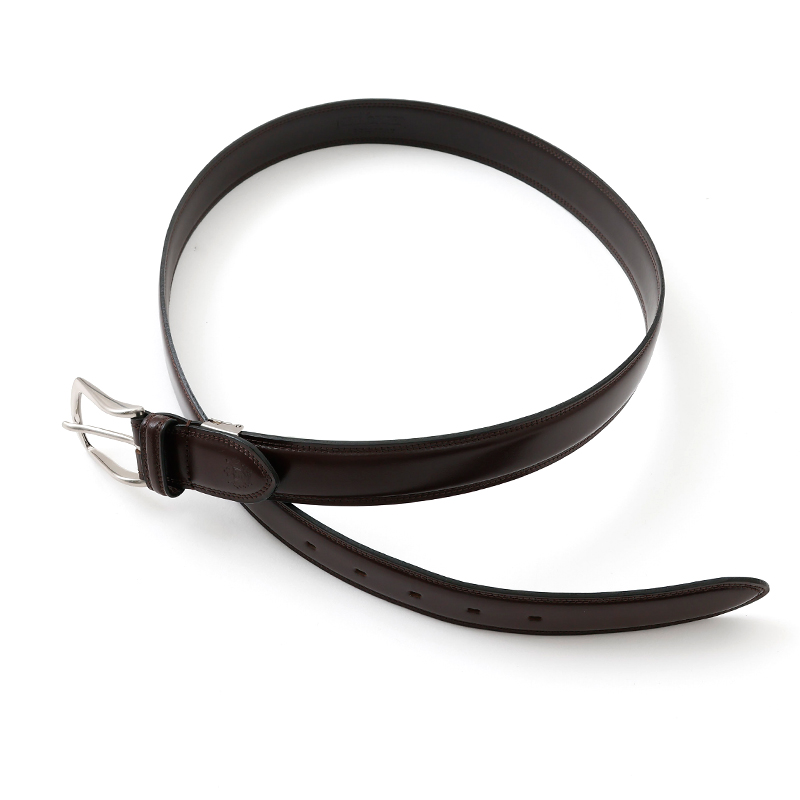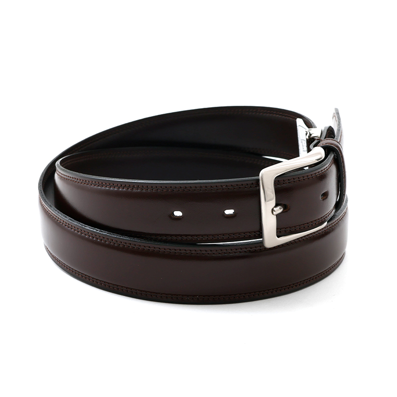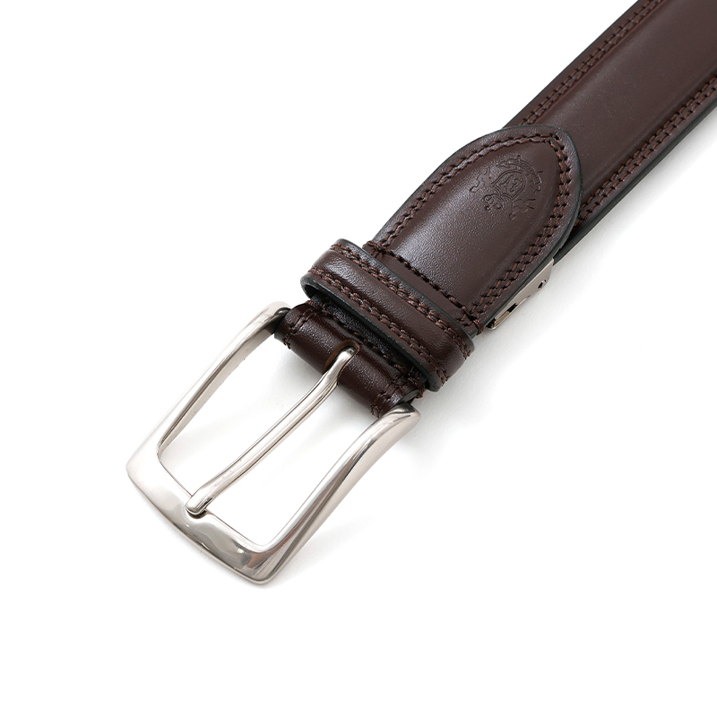 スタンダードなデザインで、スムースレザーを使用したピンタイプのビジネスベルトです。