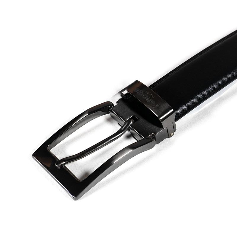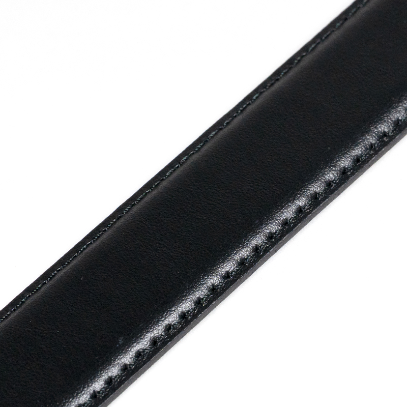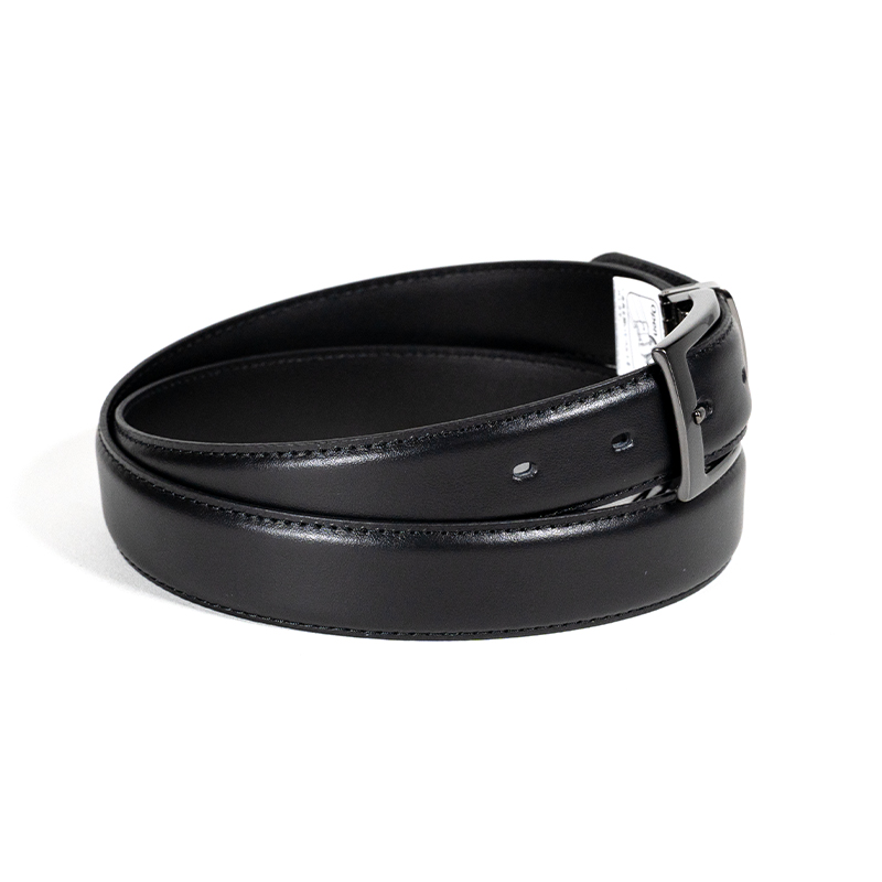 スマートな印象を与える、クロニッケルバックルを使用したピンベルトです。