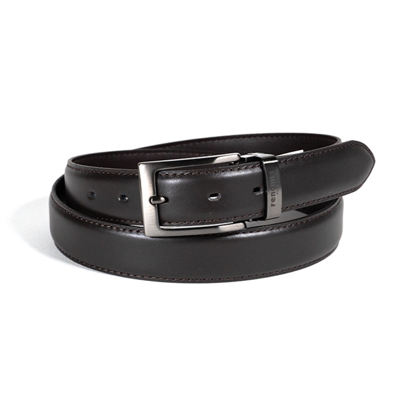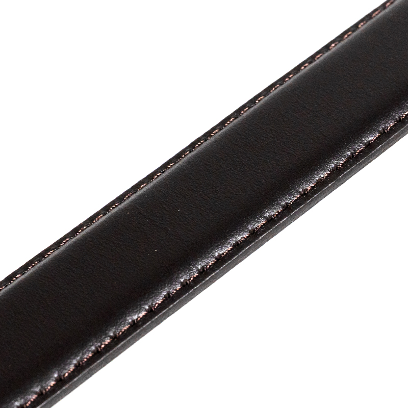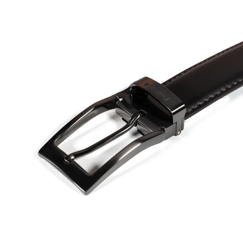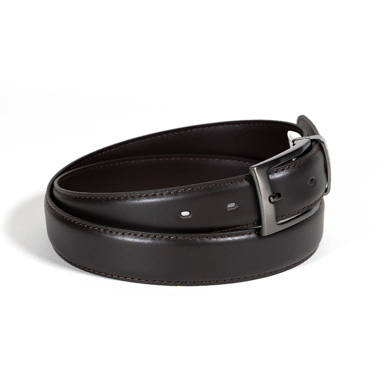 スマートな印象を与える、クロニッケルバックルを使用したピンベルトです。