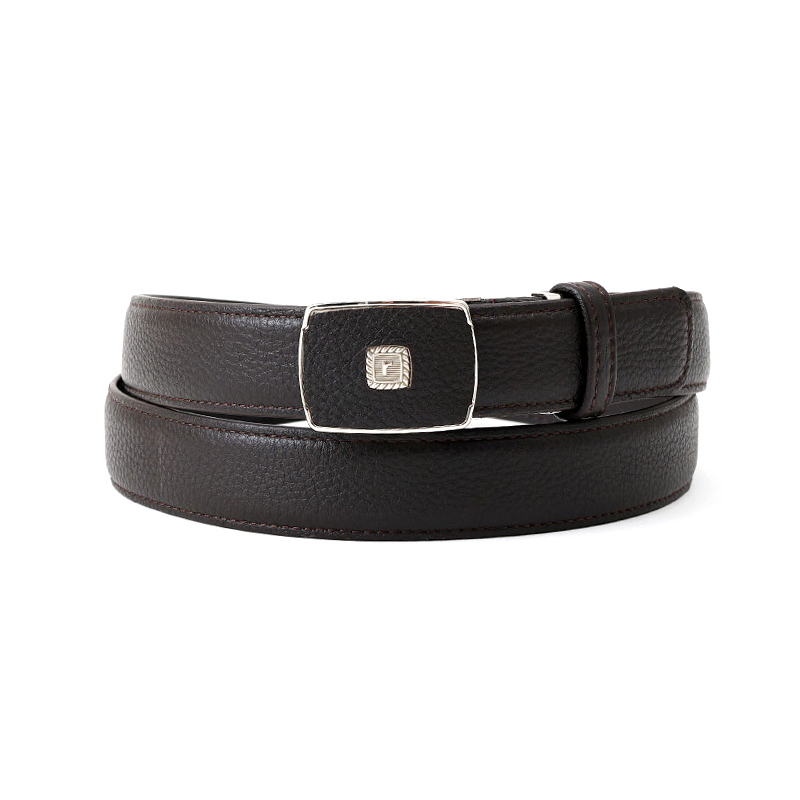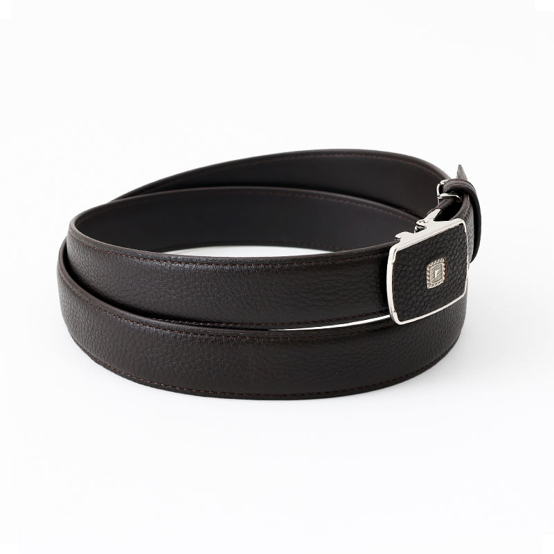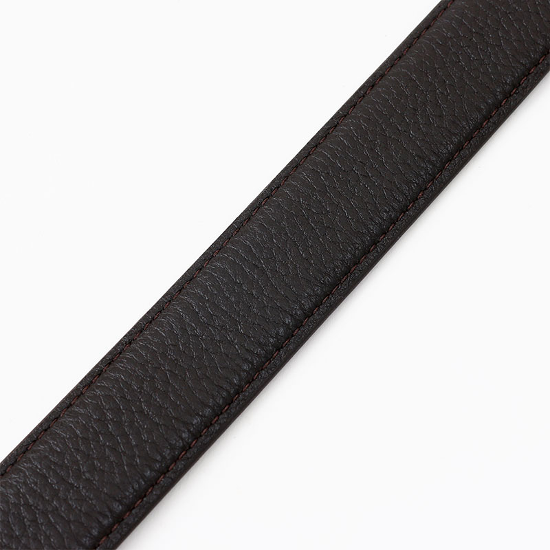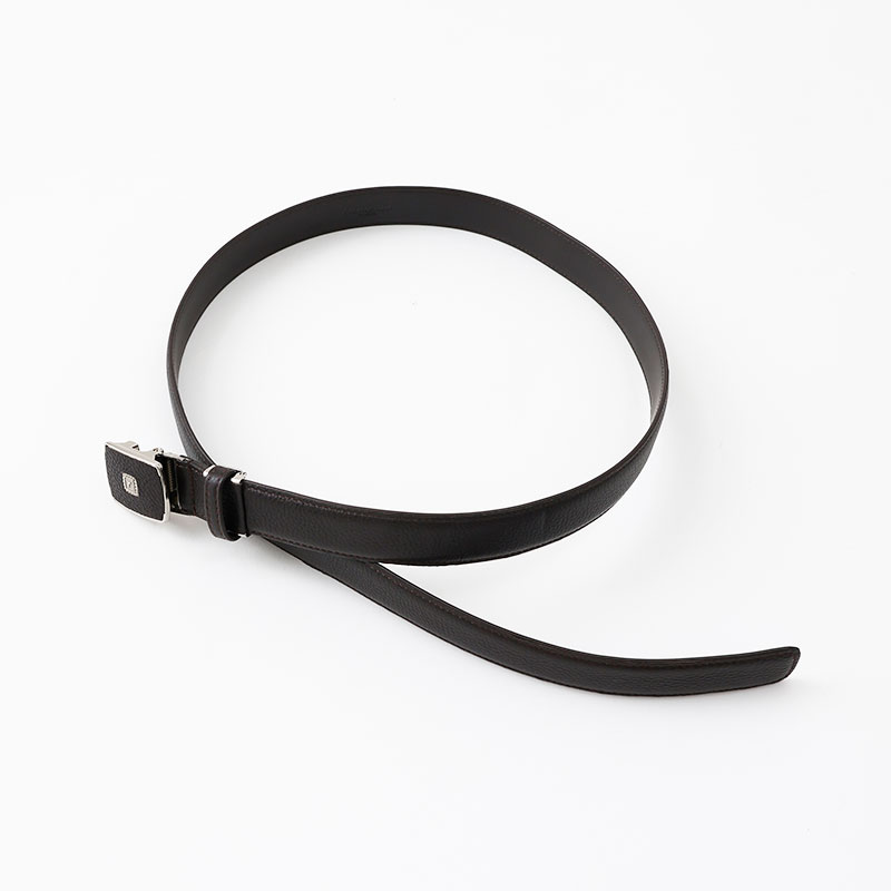 傷が付きにくいシボの型押しレザーを使用した無段階調節ベルトです。