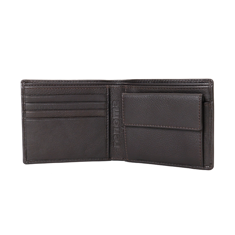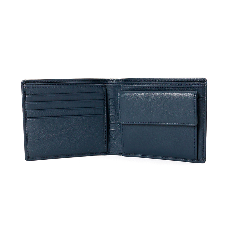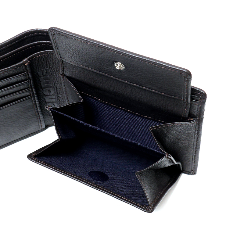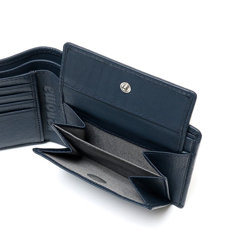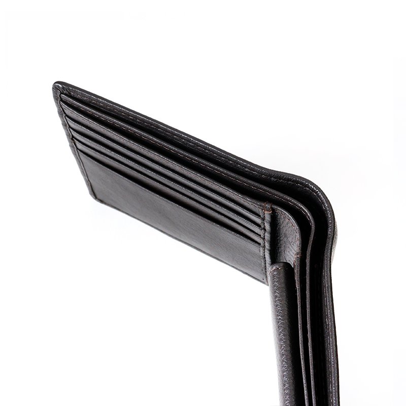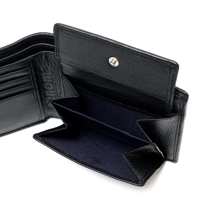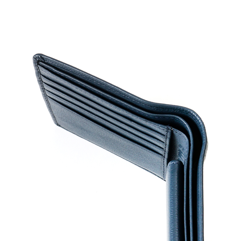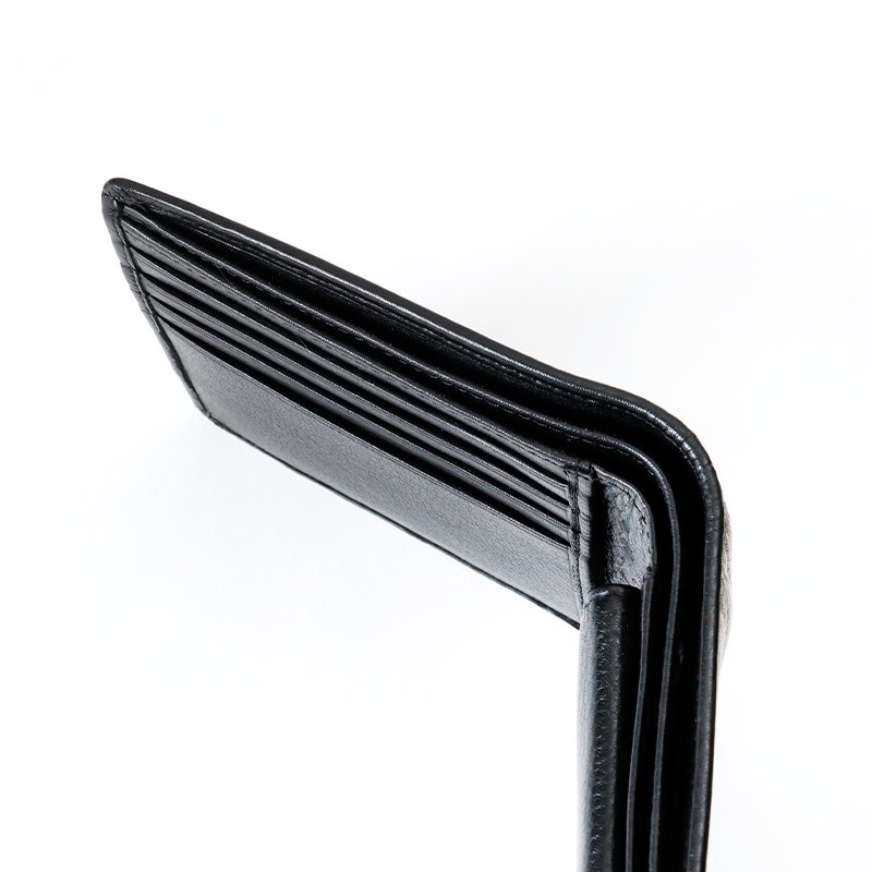 二つ折り財布はスタンダードなデザインで、6ヵ所のカード室に加え、ポケットが3つ付いています。