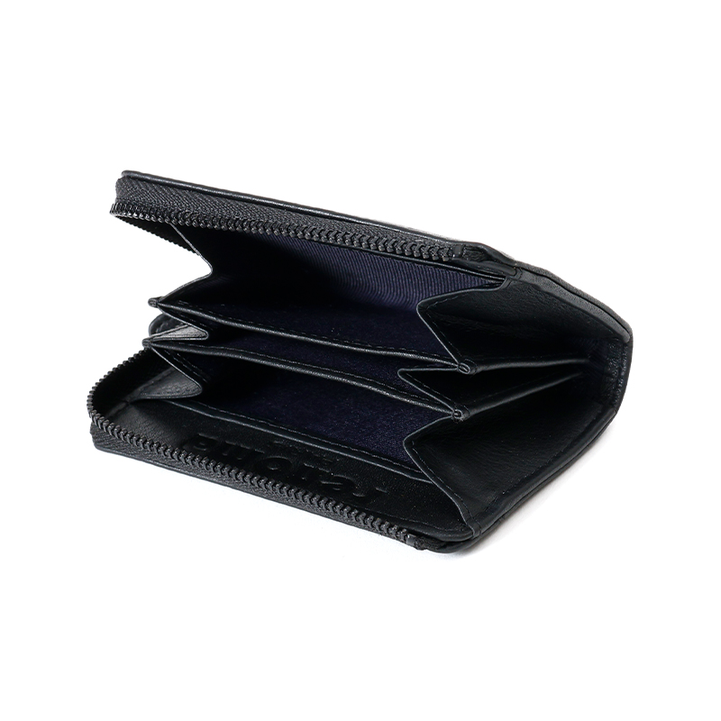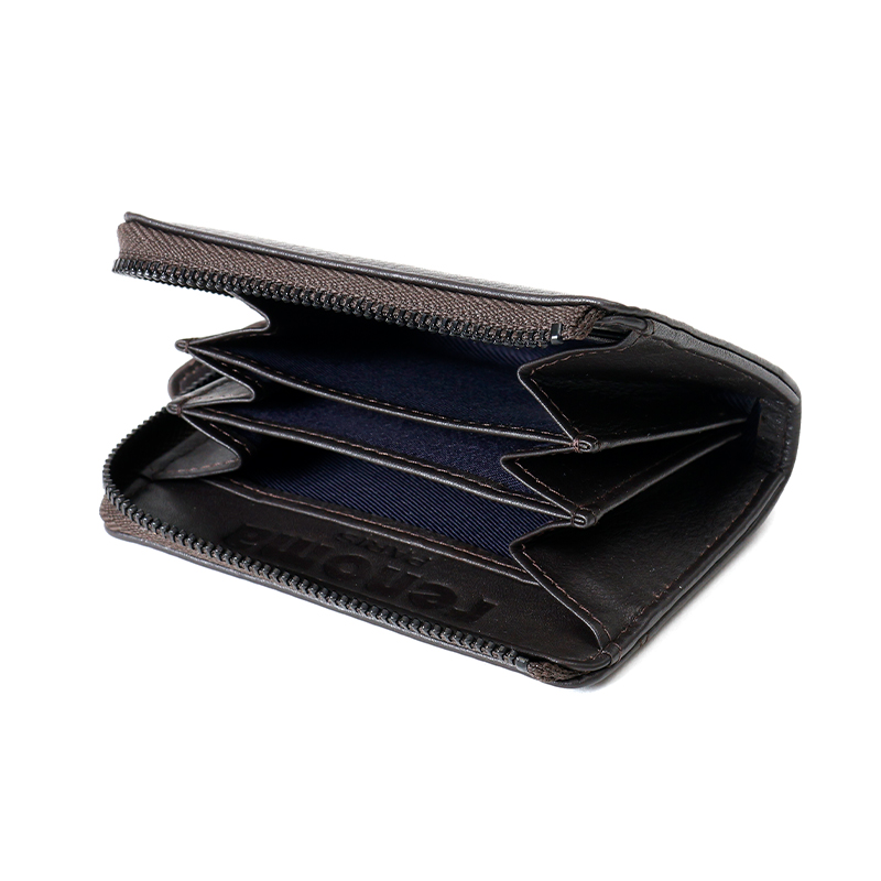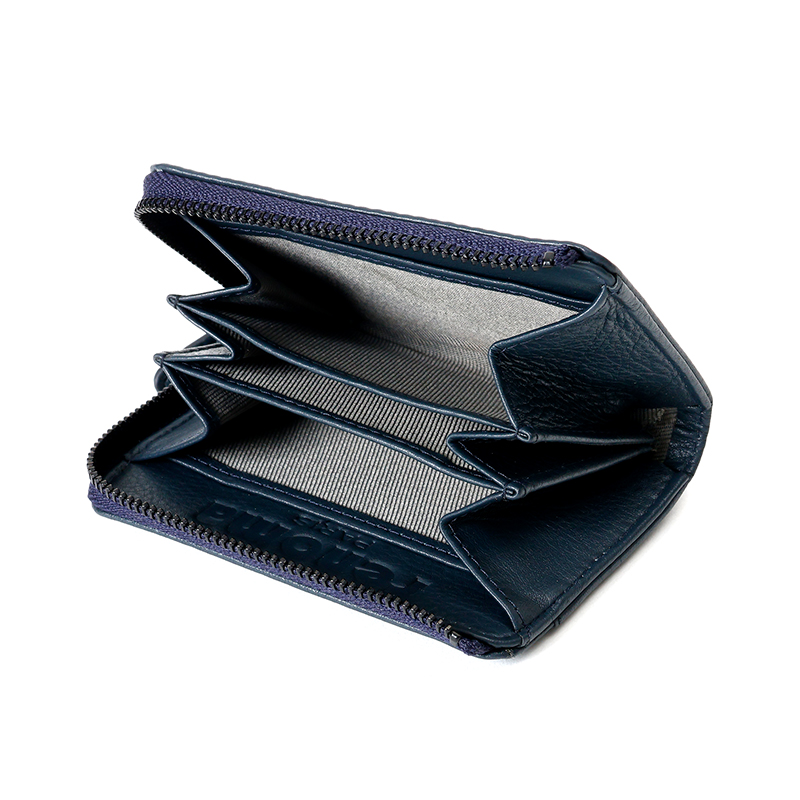 大きく開口するL字型ファスナーの小銭入れは、3つの仕切りがあるので、小銭を別けて収納することができます。