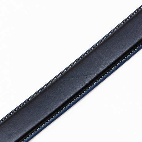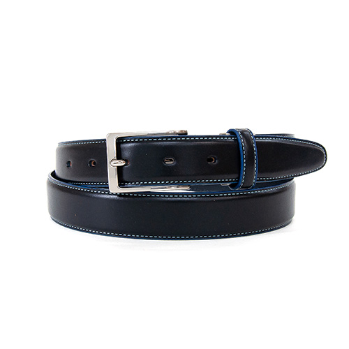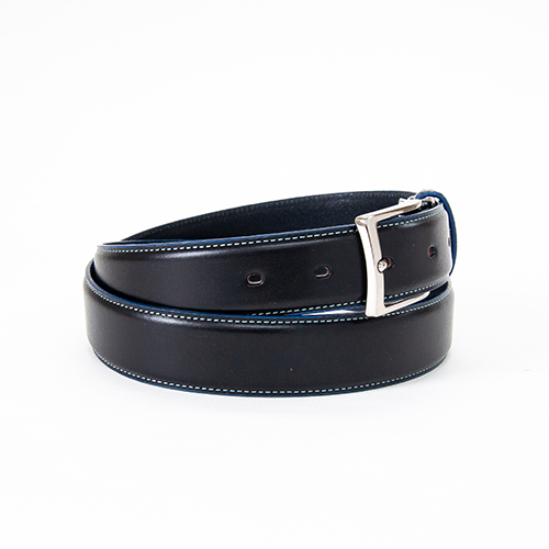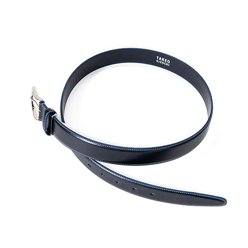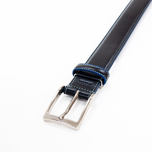 上品なツヤ感のあるイタリアレザーを使用し、帯のサイドにカラーアクセントを施した遊び心ある日本製のカジュアルベルトです。